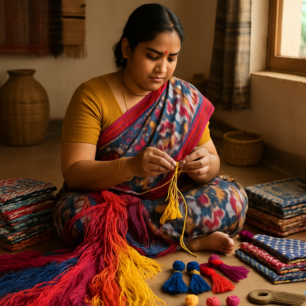 intricate patterns created through a unique dyeing technique called "Ikkat." In Ikkat weaving, the yarns are tie-dyed...