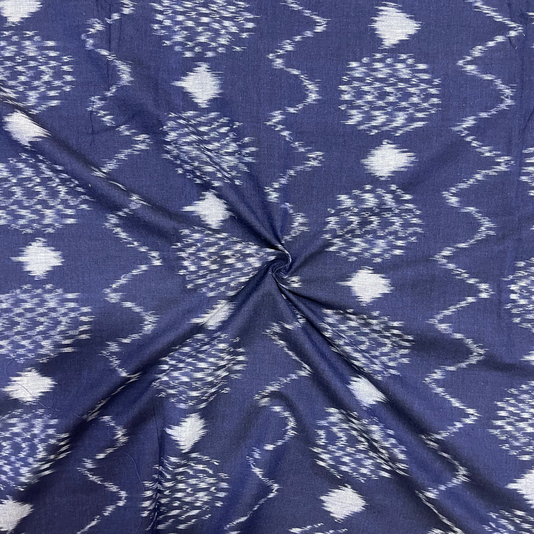 Navy Blue Colour Ikkat Cotton Fabric
