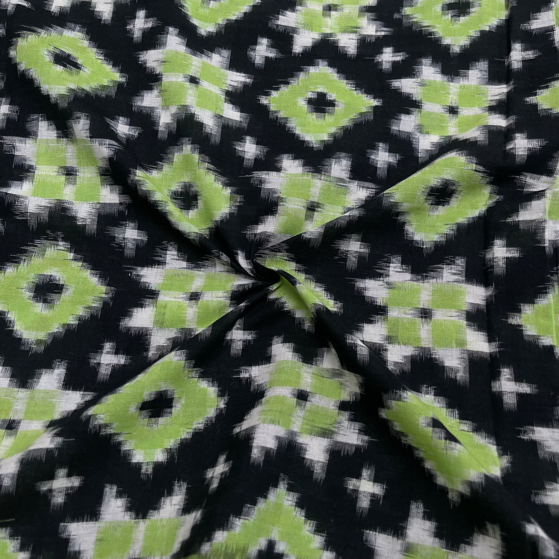 Black & Green Telia Rumal Ikkat Cotton Fabric
