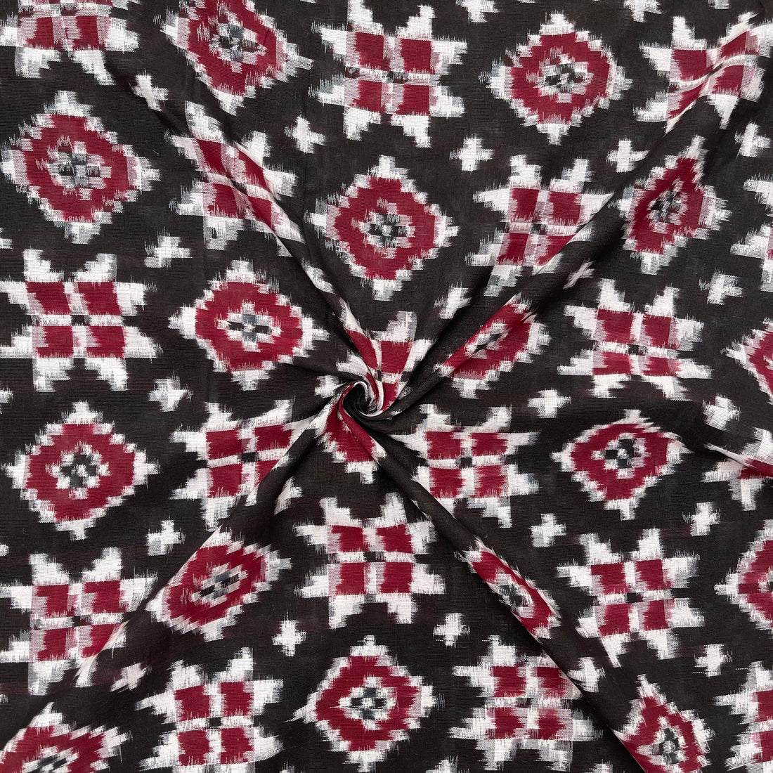 Black & Maroon Color Telia Rumal Ikkat Cotton Fabric