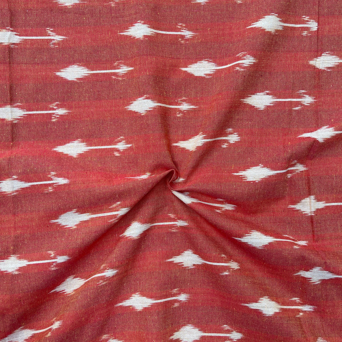 Orange Maroon Color Ikkat Silk cotton Fabric