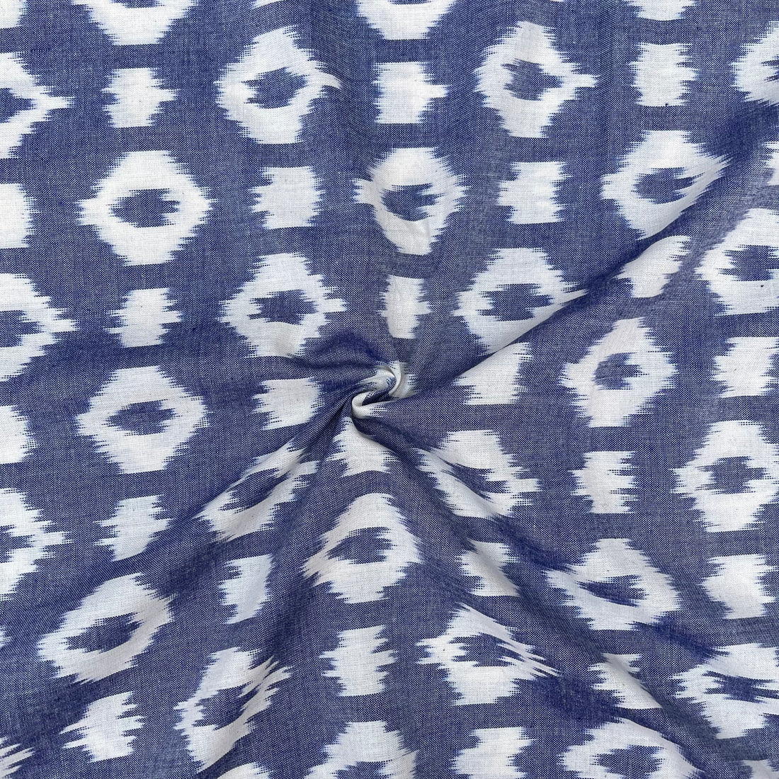 Pestal Blue Base Multi Color Ikkat cotton Fabric