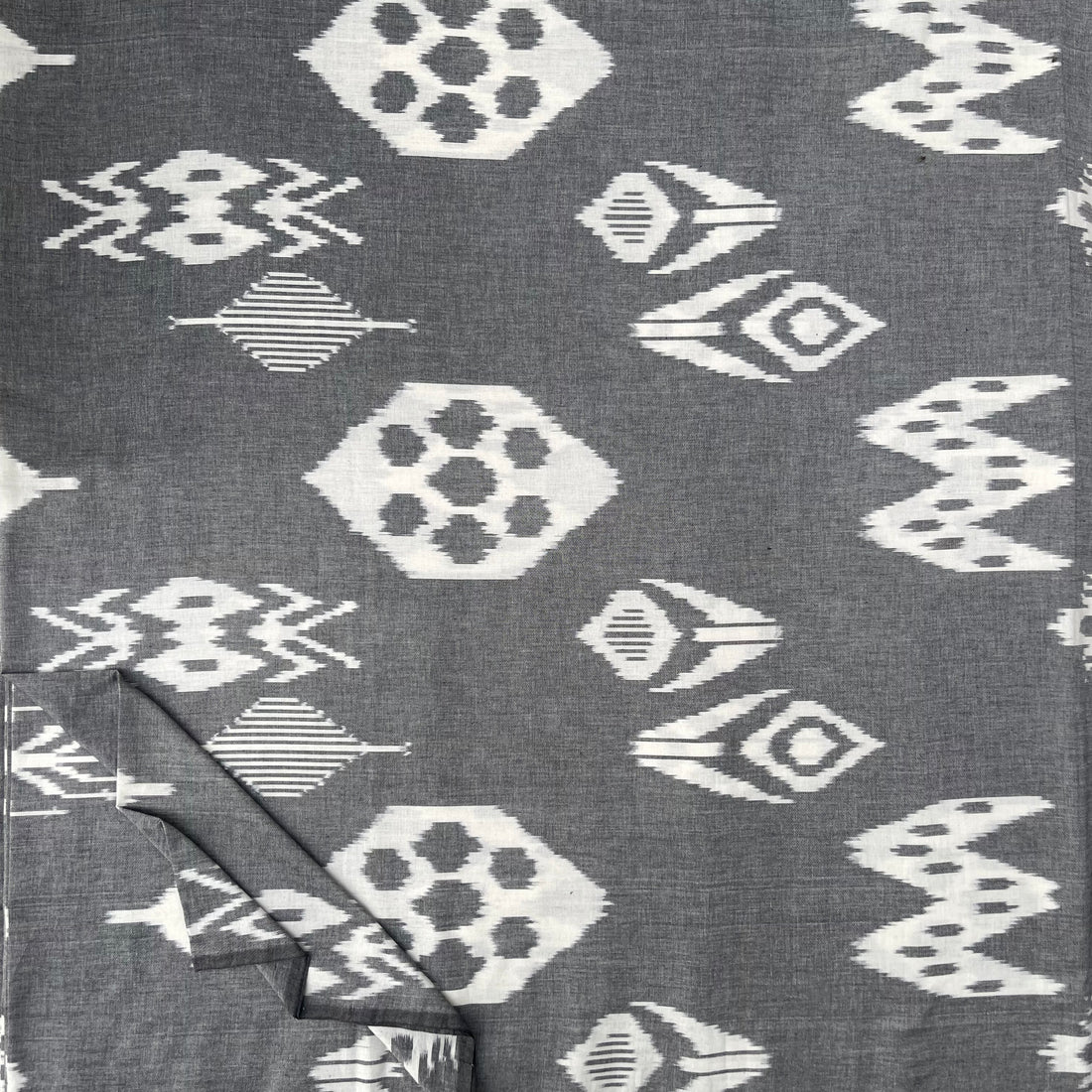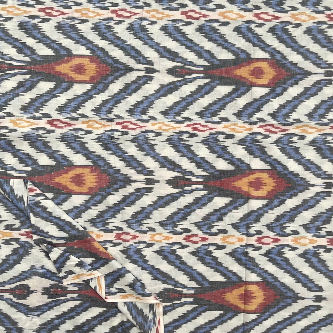 Blue grey Base central Asian Ikkat Cotton Fabric
