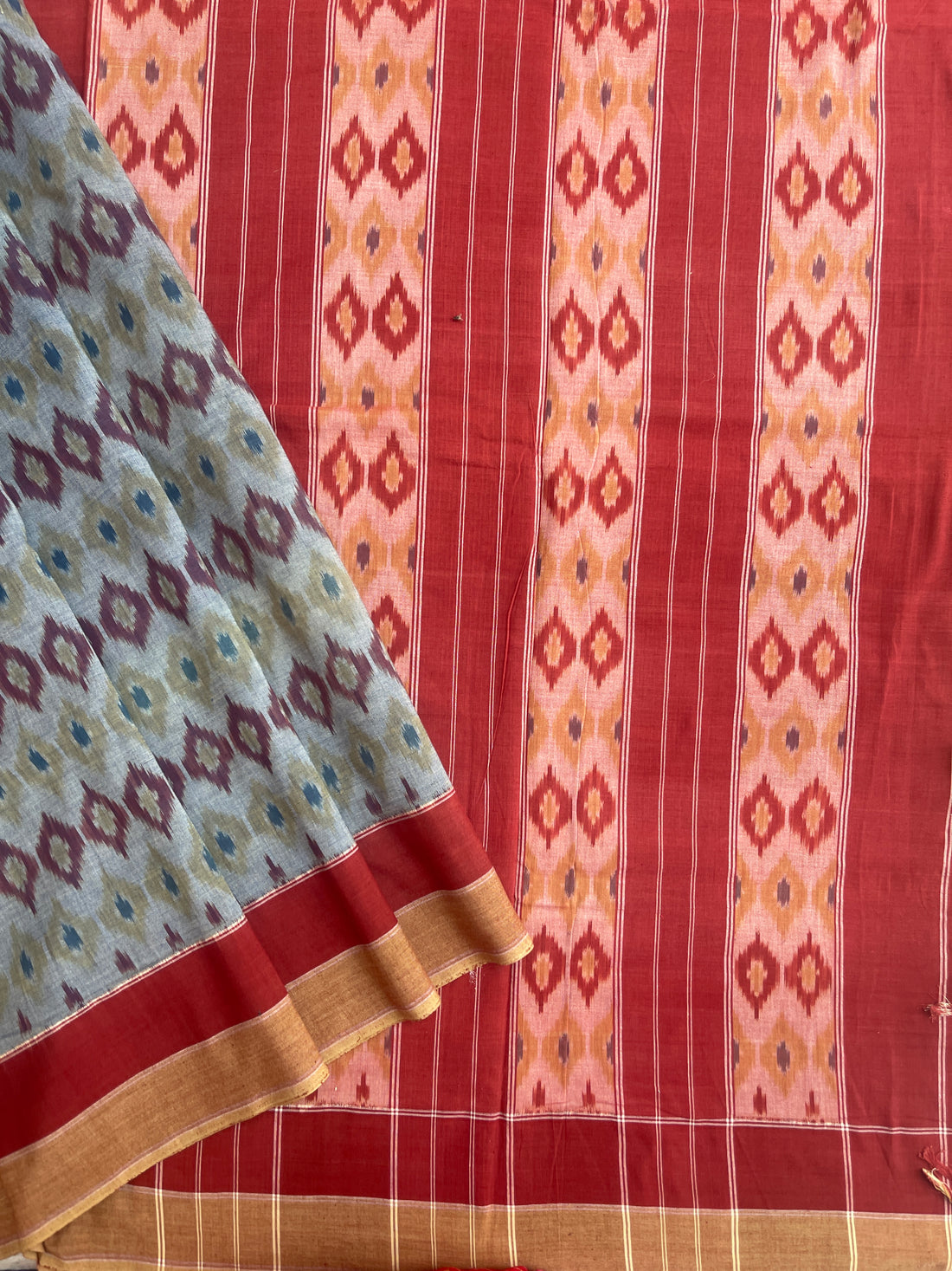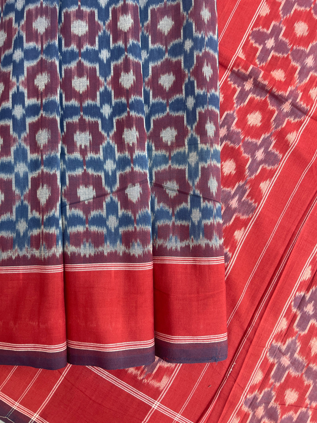 Telia Rumal Pattern Double Ikat Natural Dyed saree