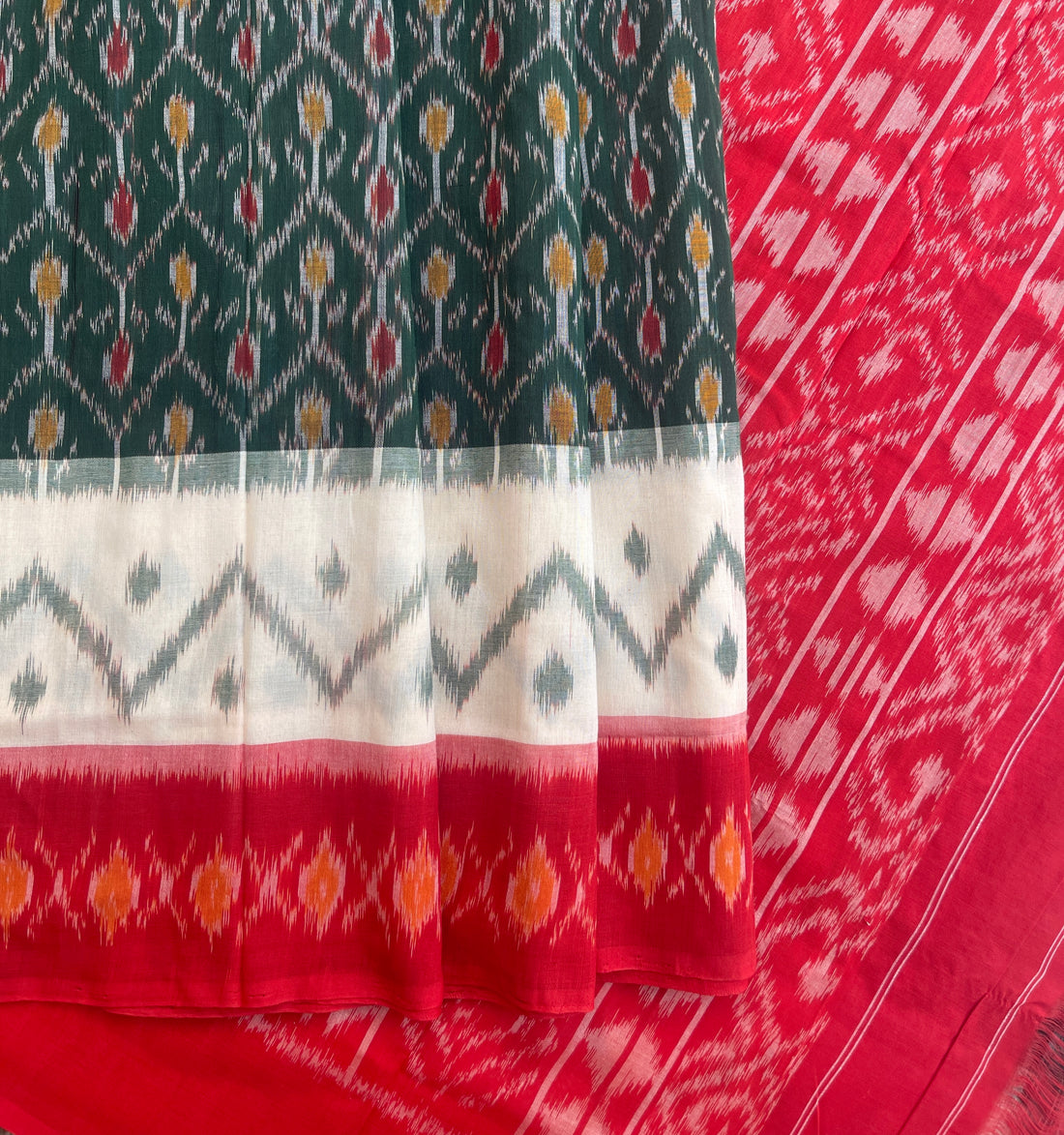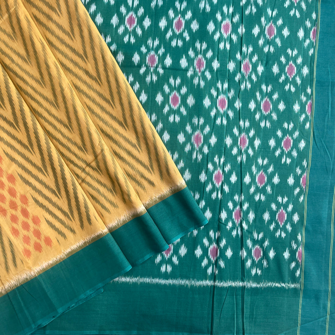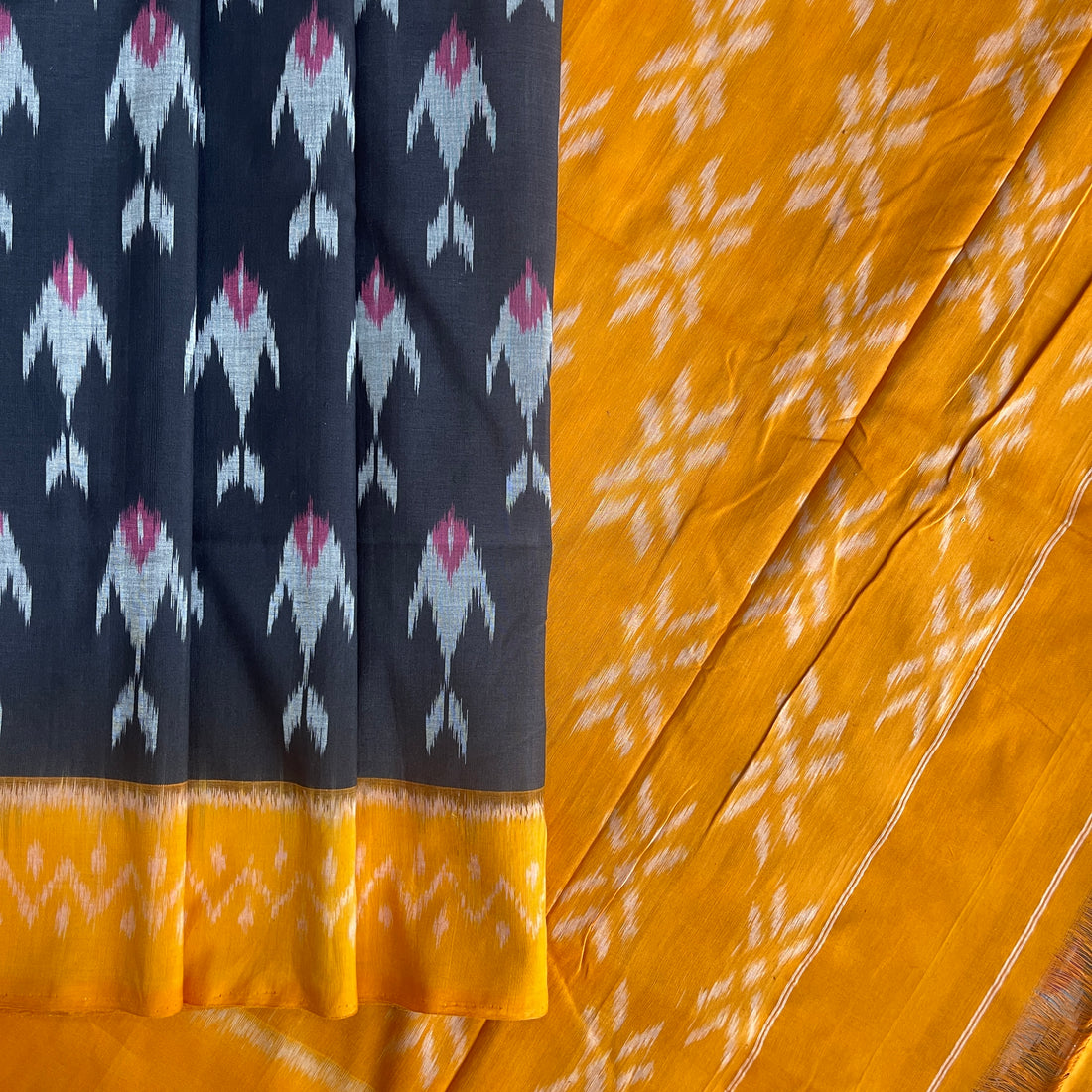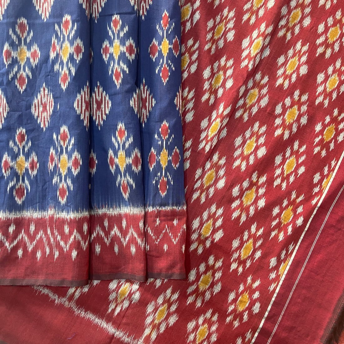 intricate patterns created through a unique dyeing technique called "Ikkat." In Ikkat weaving, the yarns are tie-dyed...