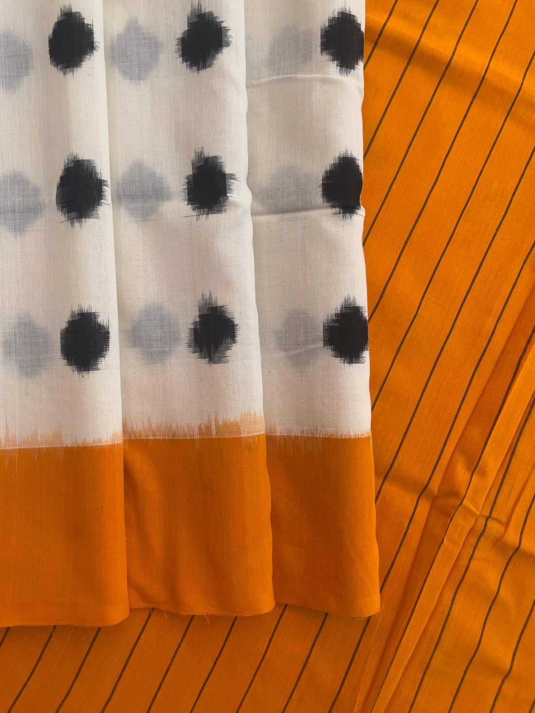 Off white & Mustard Yellow Ikkat cotton Saree
