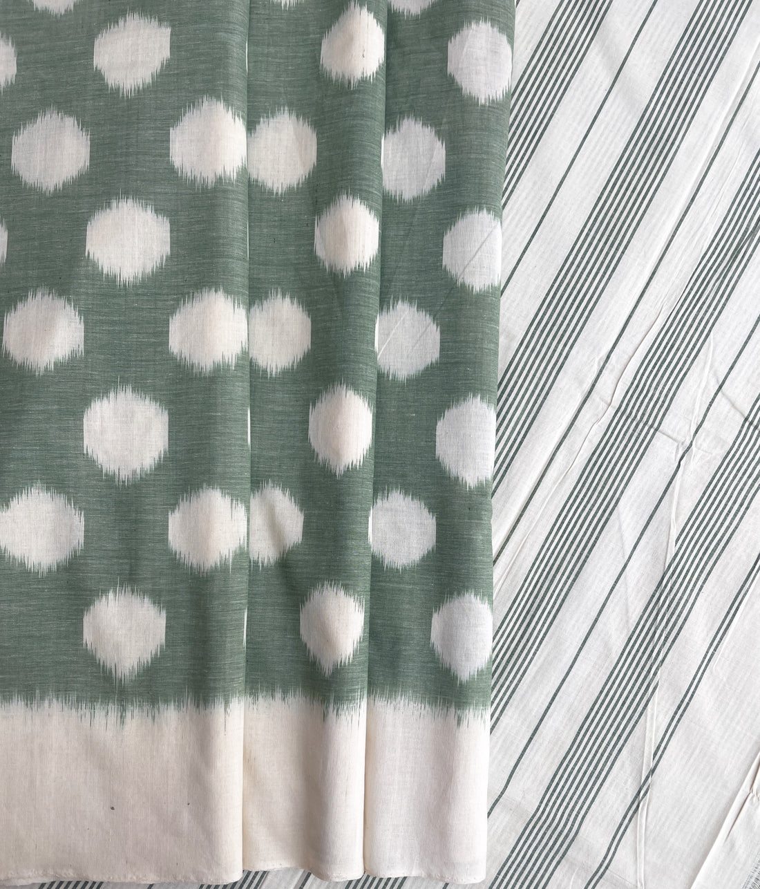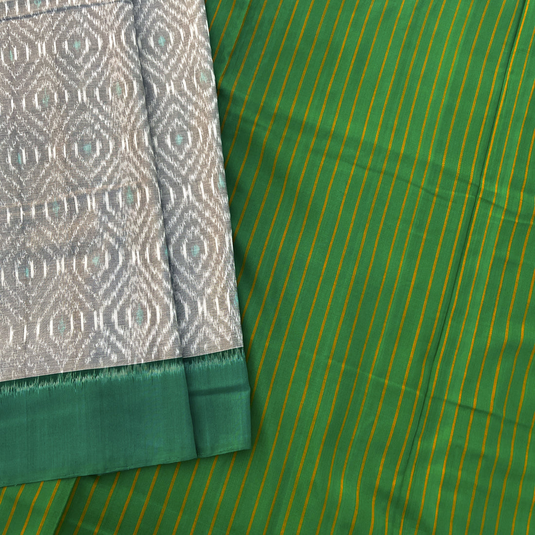 Cambodian Ikkat cotton Saree in Green & Grey