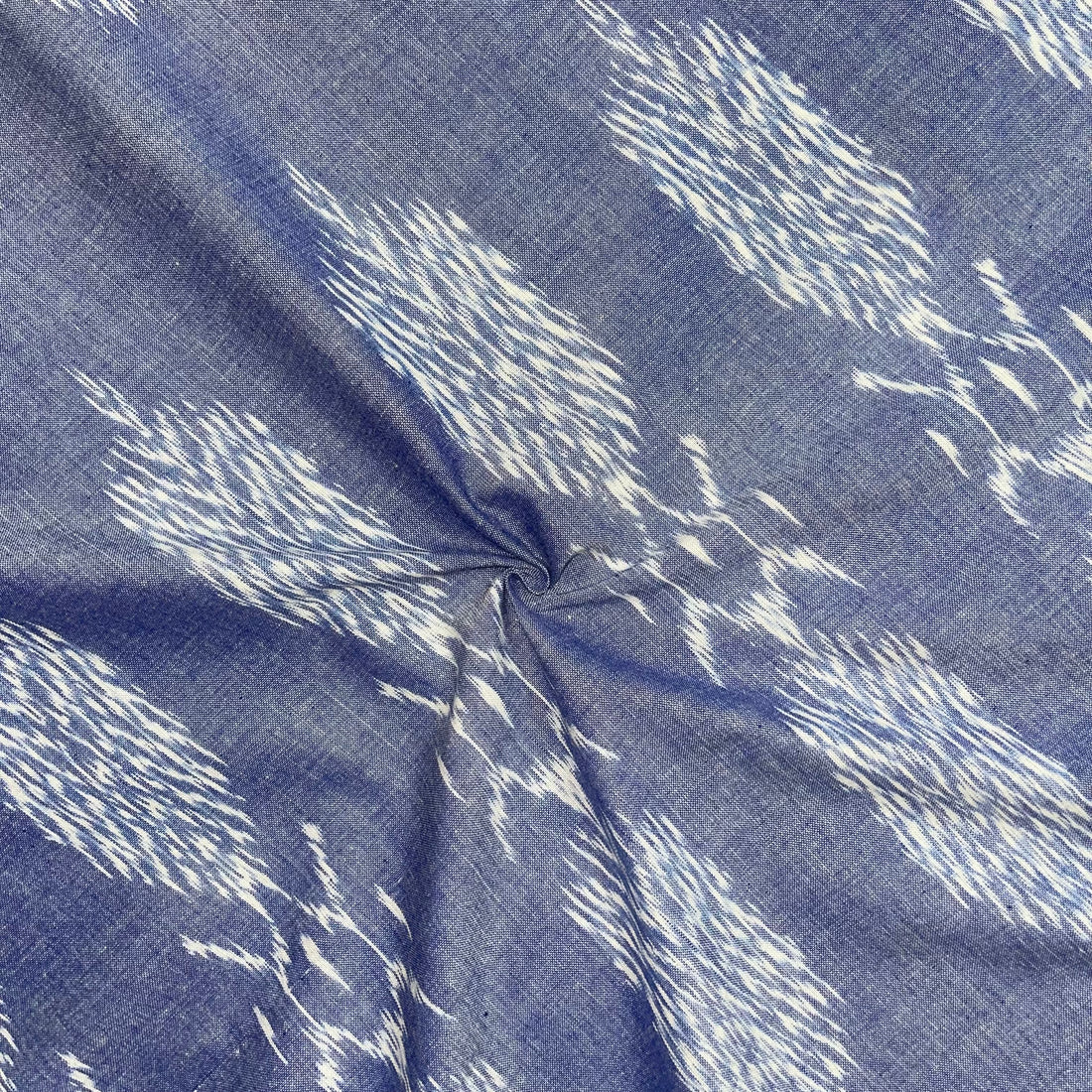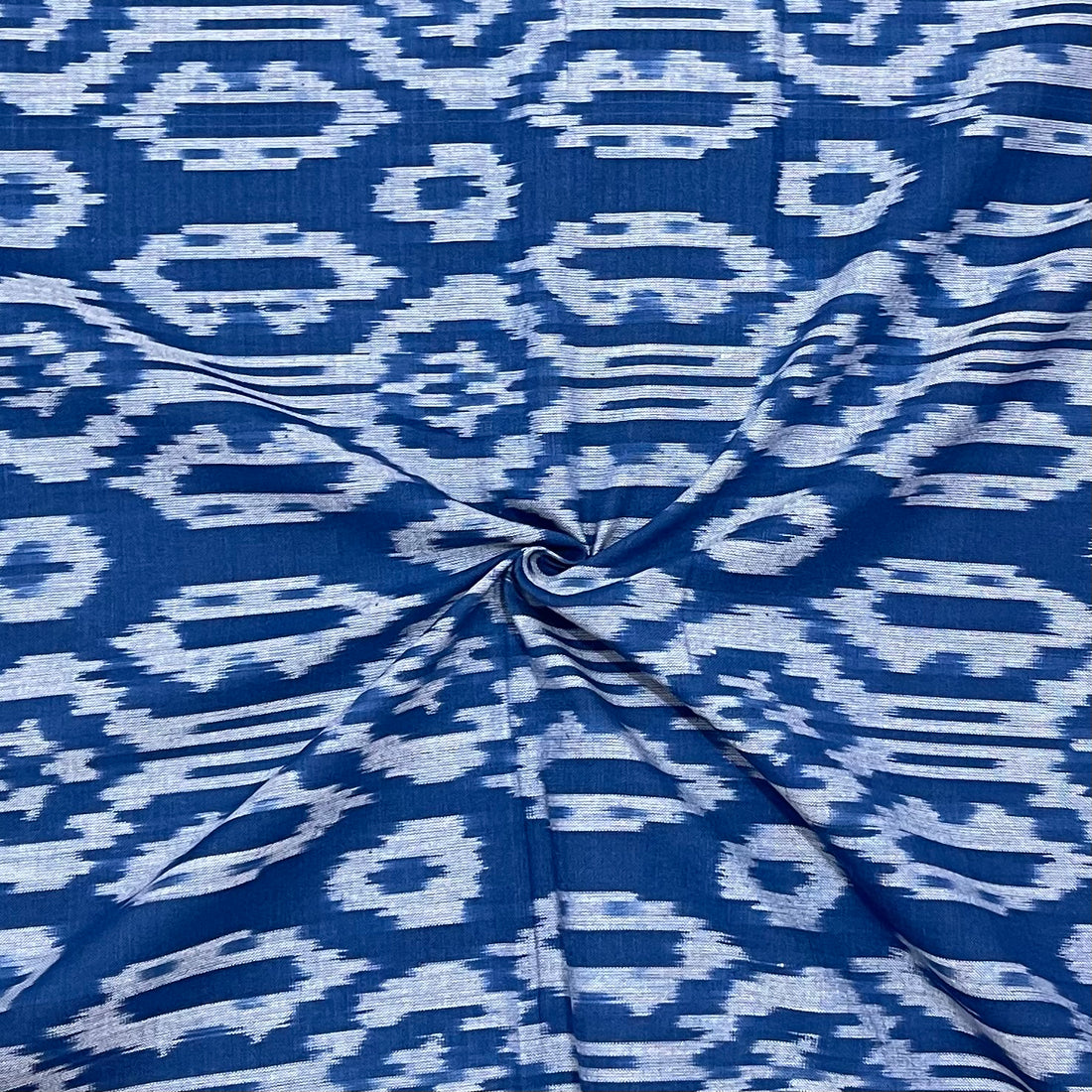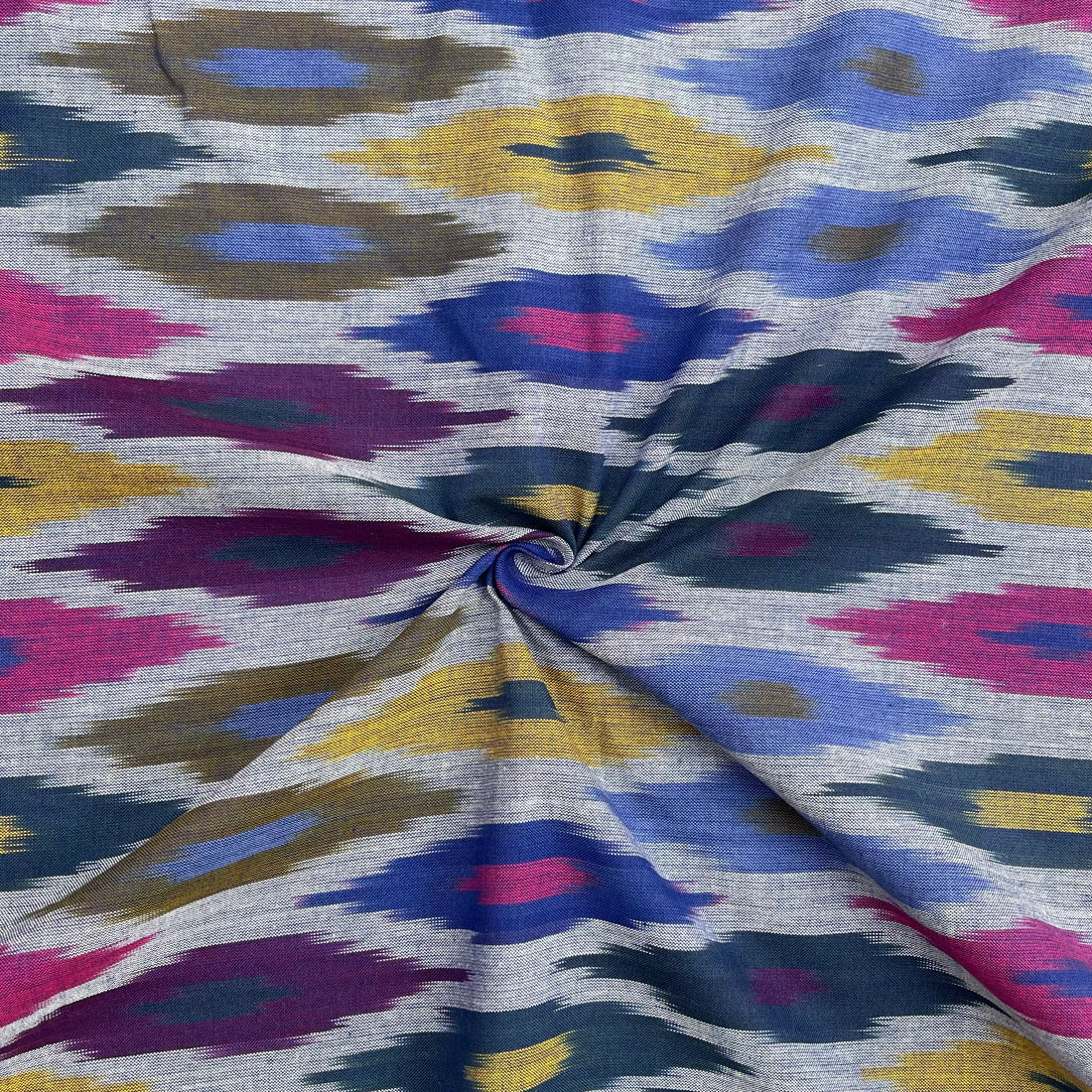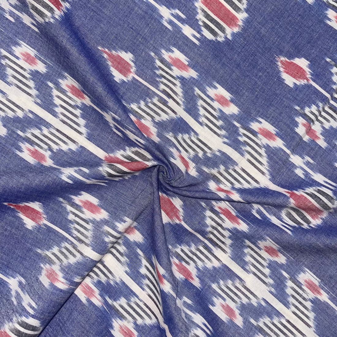 Pestal Blue Base Multi Color Ikkat cotton Fabric