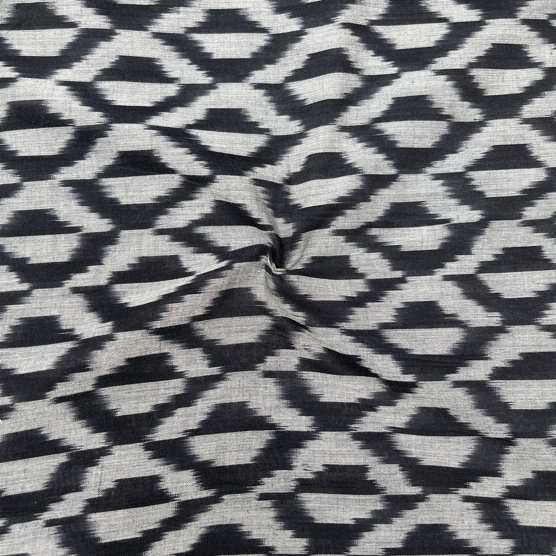 Mersiced Silver & Black Colour Ikkat Cotton Fabric