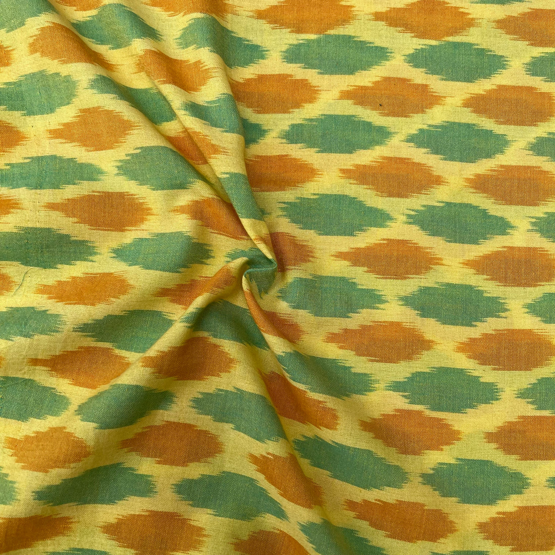 Mersiced Lemon Yellow Colour Ikkat Cotton Fabric