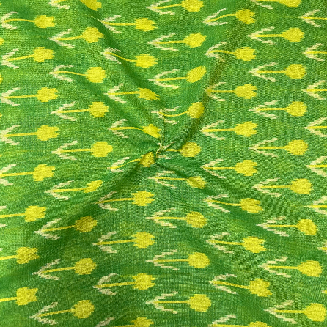 Mersiced Parrot Green Colour Ikkat Cotton Fabric