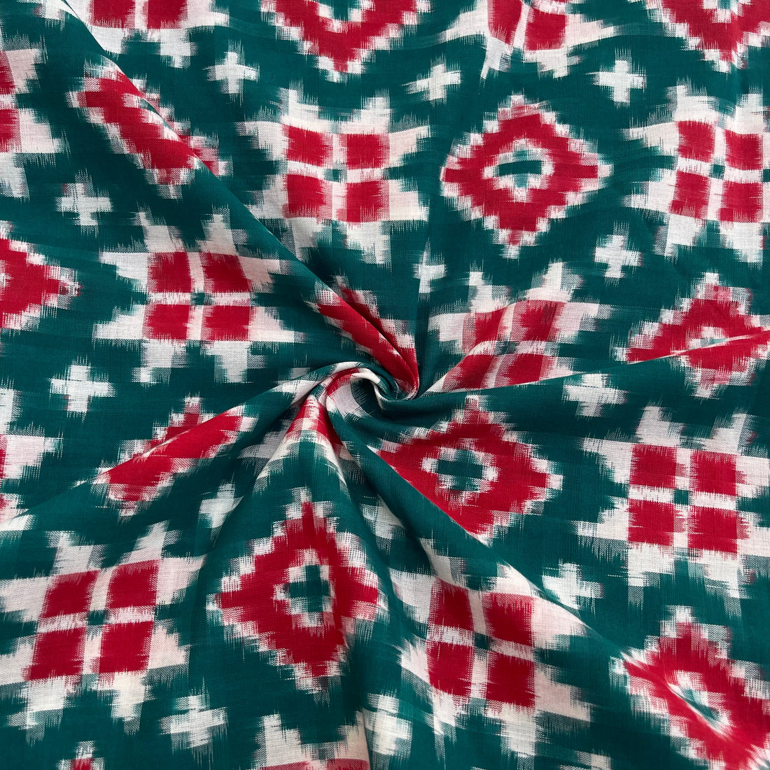 Green & Red Telia Rumal Ikkat Cotton Fabric