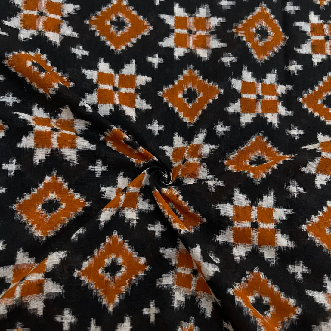 Black & Yellow Telia Rumal Ikkat Cotton Fabric