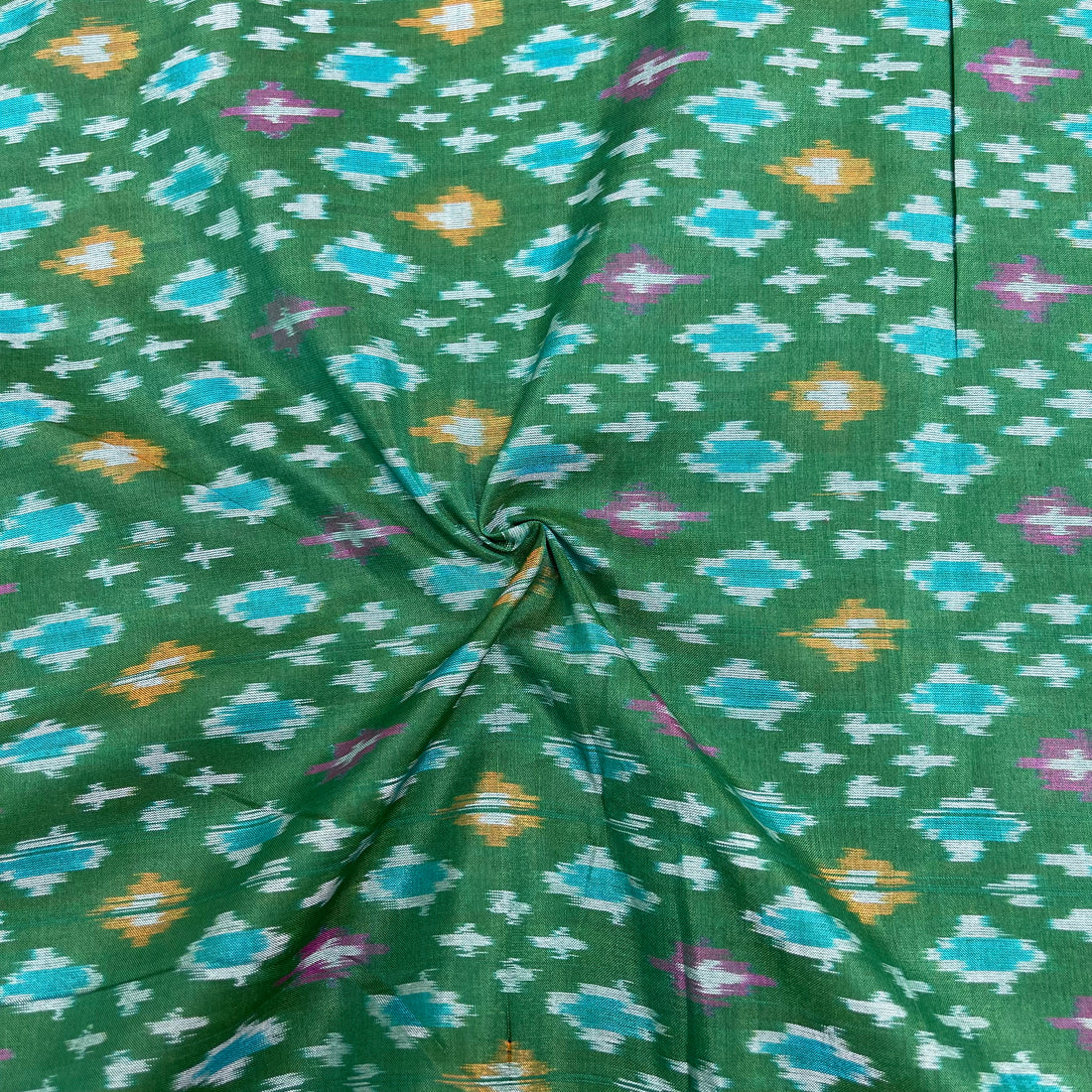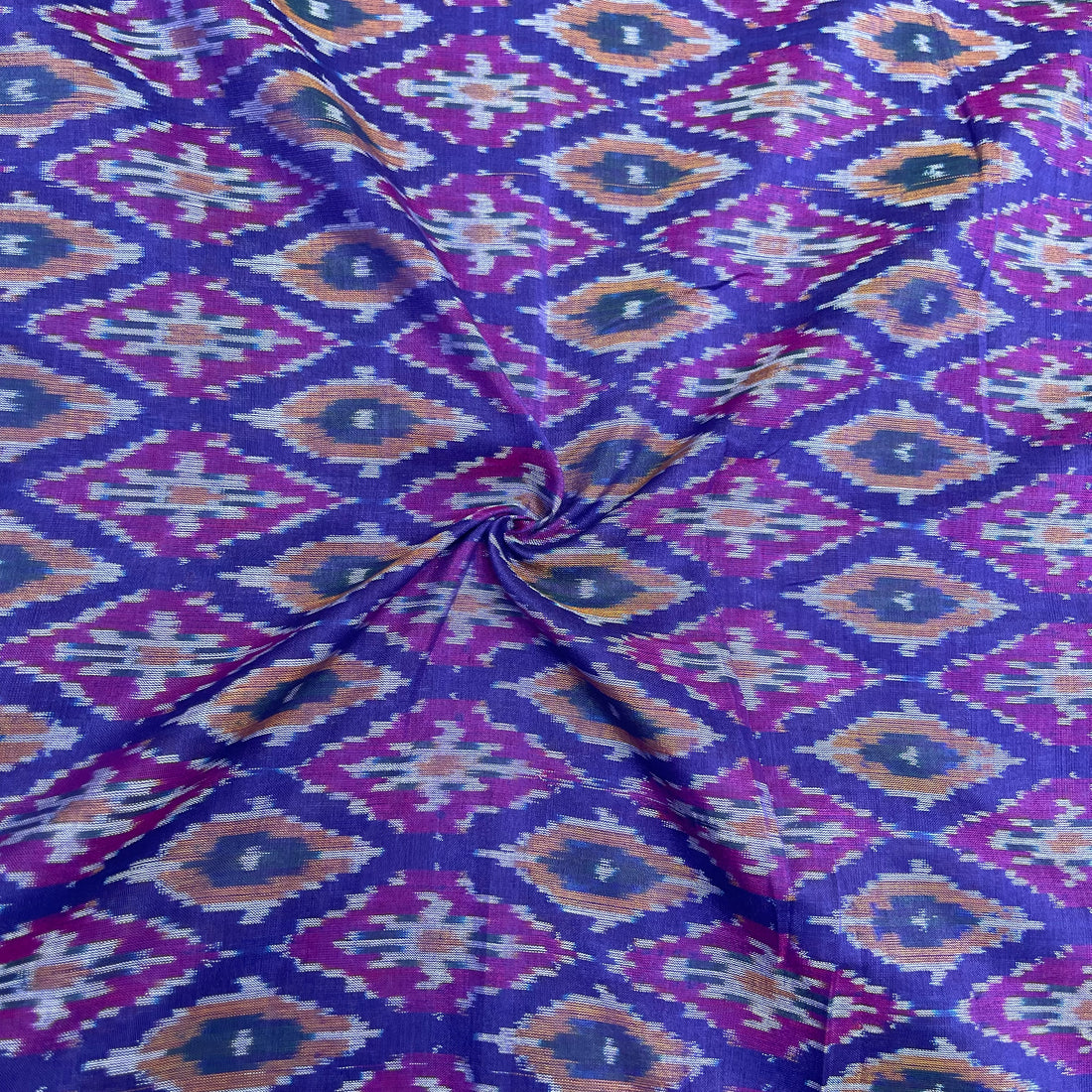 Discover the timeless charm of Ikkat Silk Cotton Fabric handwoven by skilled village master weavers...