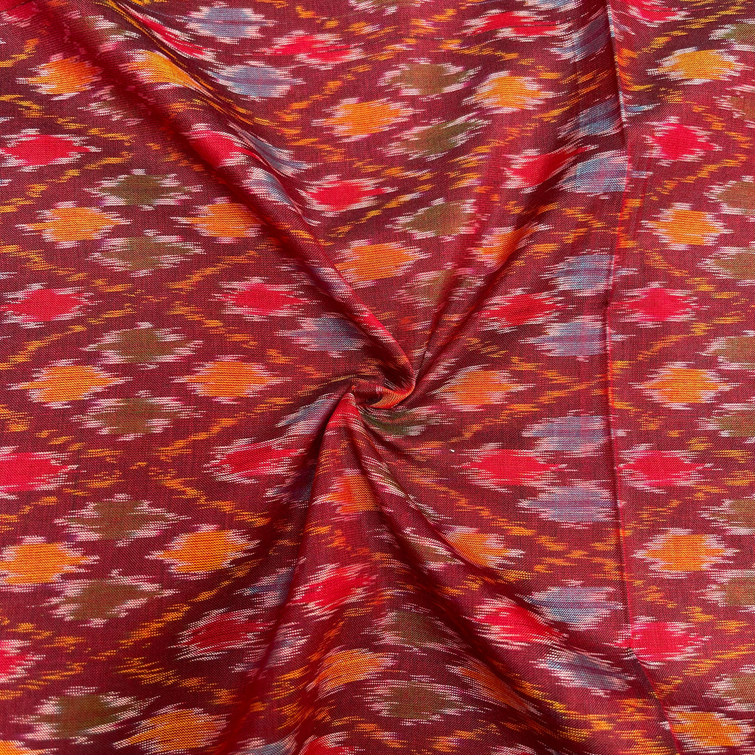 Maroon Color Raw Silk Ikkat cotton Fabric