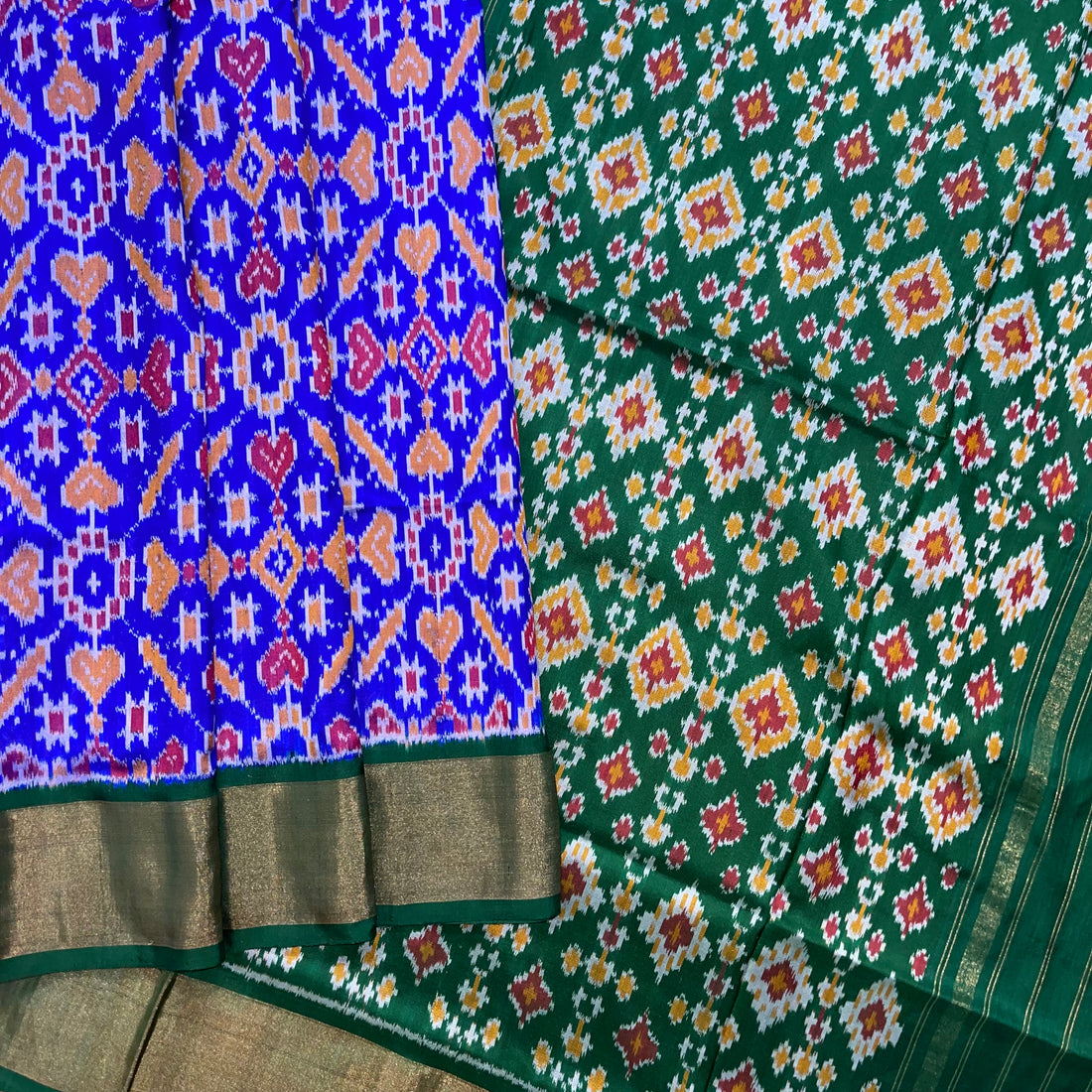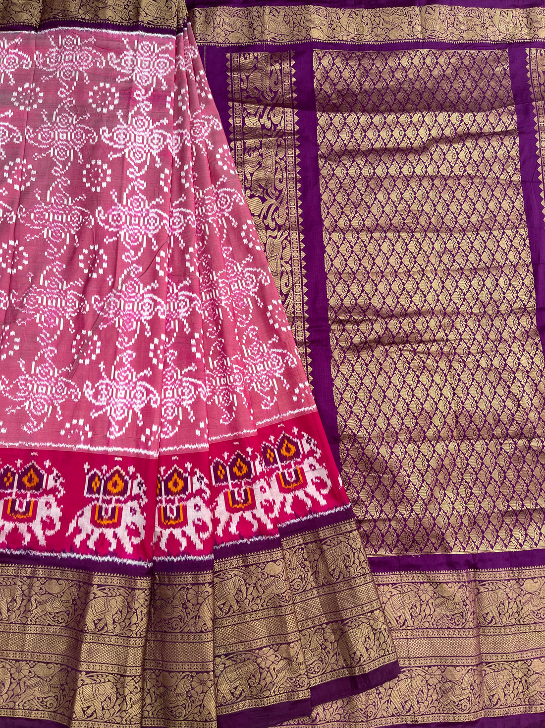 Pink & Green Ikkat Silk Sari in pure Mulberry silk
