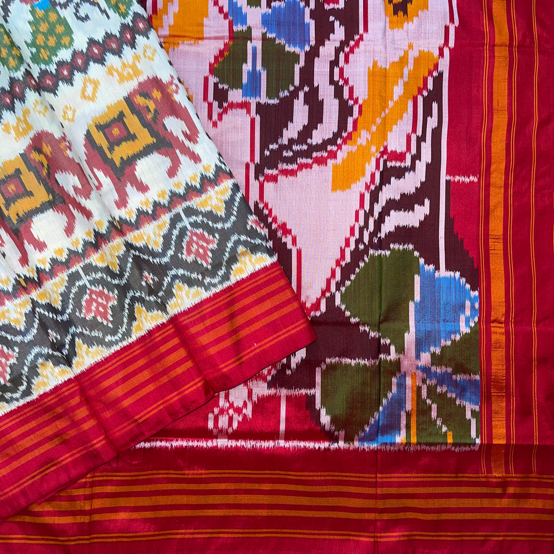Step into the world of timeless tradition and vibrant artistry with this Ikkat Silk Saree, a...