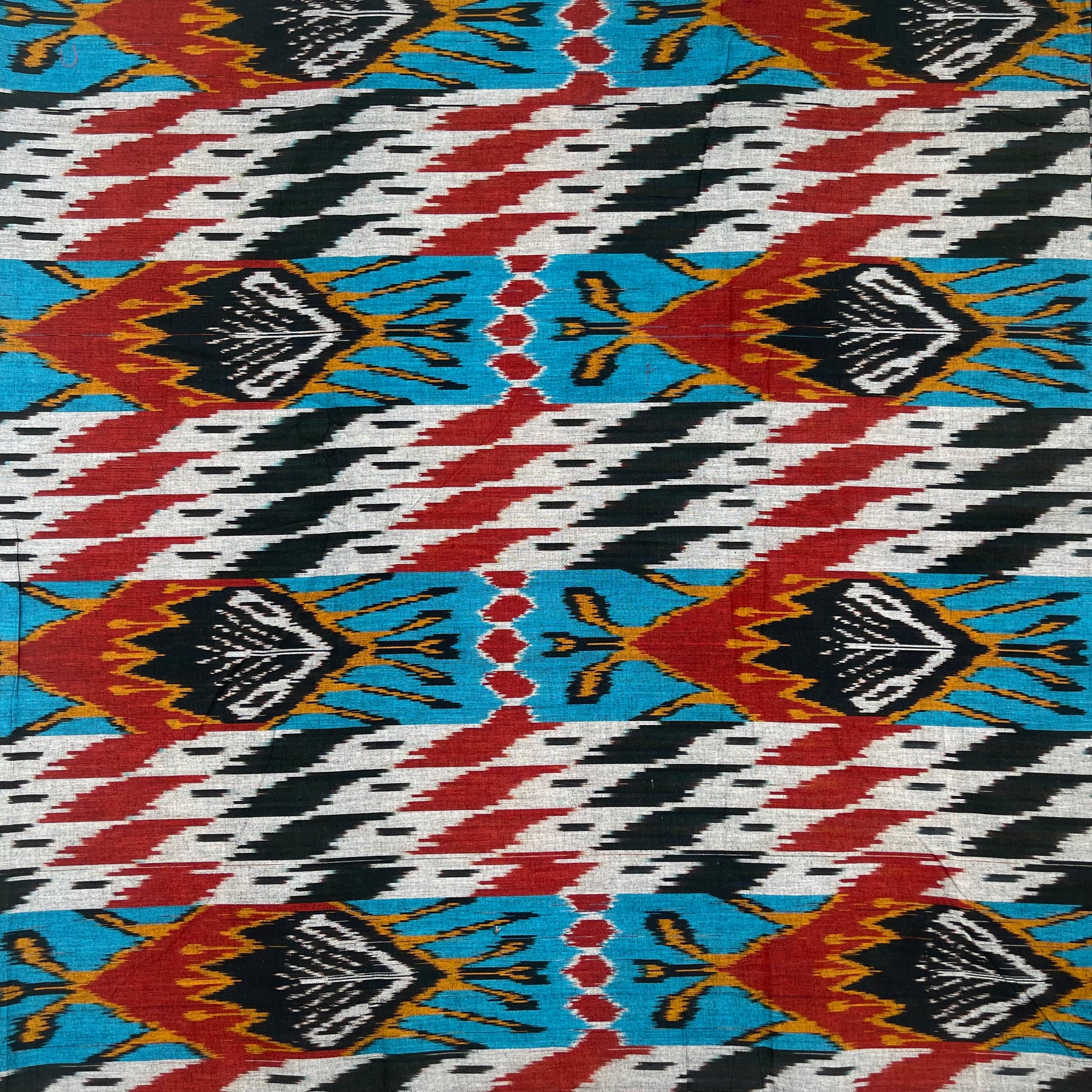 This textile is a proud part of the Pochampally Ikkat tie & dye tradition, known for its vibrant patterns and precise craftsmanship. Woven with pure cotton, the fabric reflects the perfect blend of Indian technique and Central Asian design inspiration, capturing the bold and symmetrical motifs often seen in Uzbek ikats.