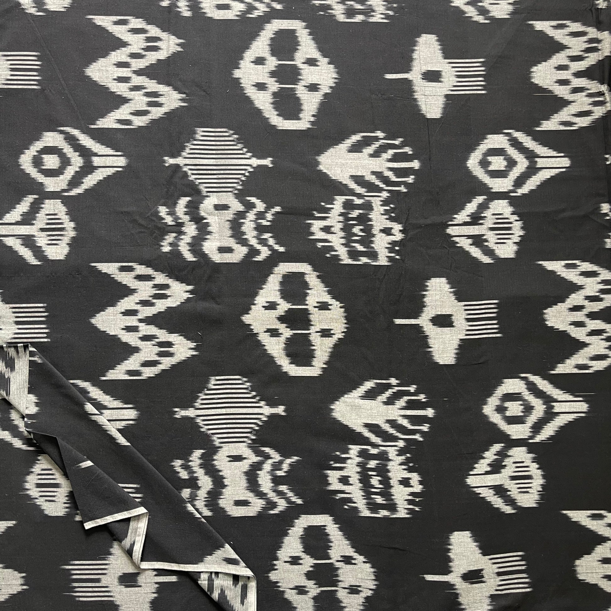 Black Central Asian Ikkat Cotton Fabric