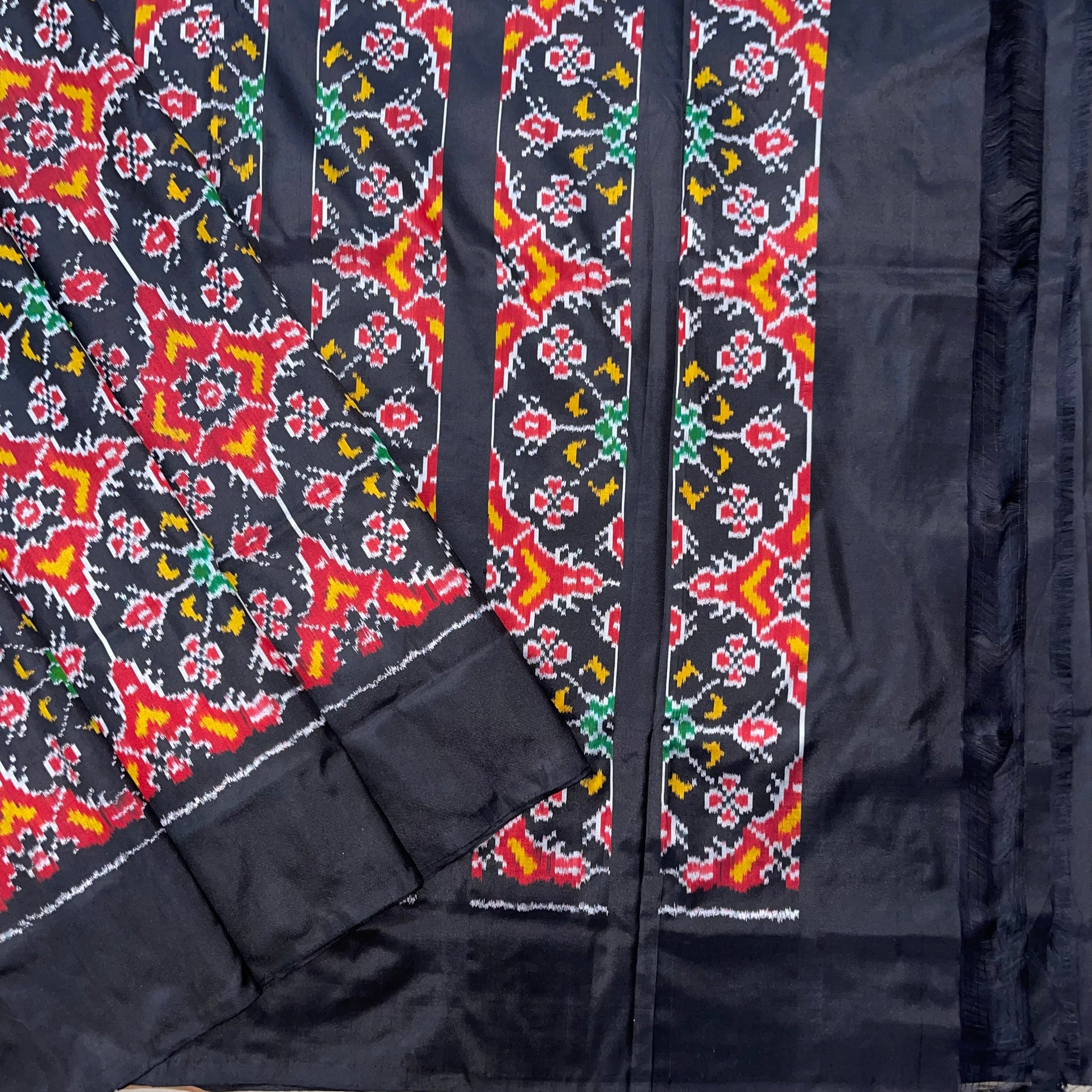 Step into the world of timeless tradition and vibrant artistry with this Ikkat Silk Saree, a true masterpiece of handwoven heritage. Crafted with precision by skilled artisans, this saree showcases the rich cultural legacy of Ikkat weaving, known for its intricate dyeing technique and bold, geometric patterns.
