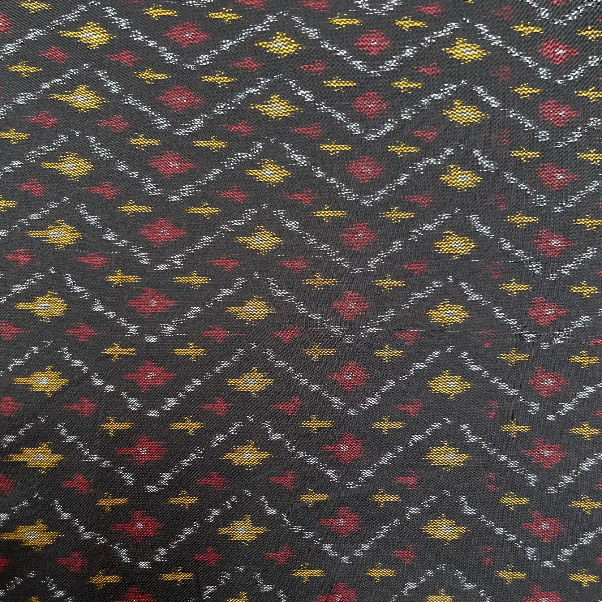 Black Raw Silk Ikkat cotton Fabric