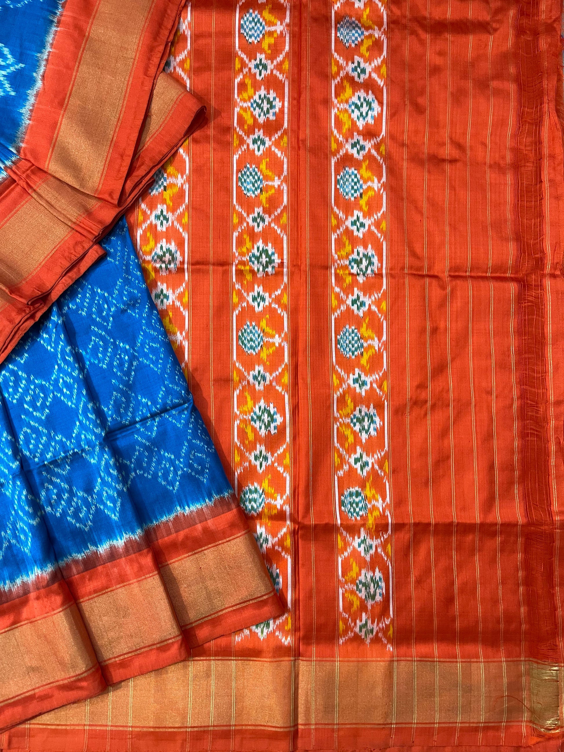 Step into the world of timeless tradition and vibrant artistry with this Ikkat mubbery Silk Saree, a true masterpiece of handwoven heritage. Crafted with precision by skilled artisans, this saree showcases the rich cultural legacy of Ikkat weaving, known for its intricate dyeing technique and bold, geometric patterns.