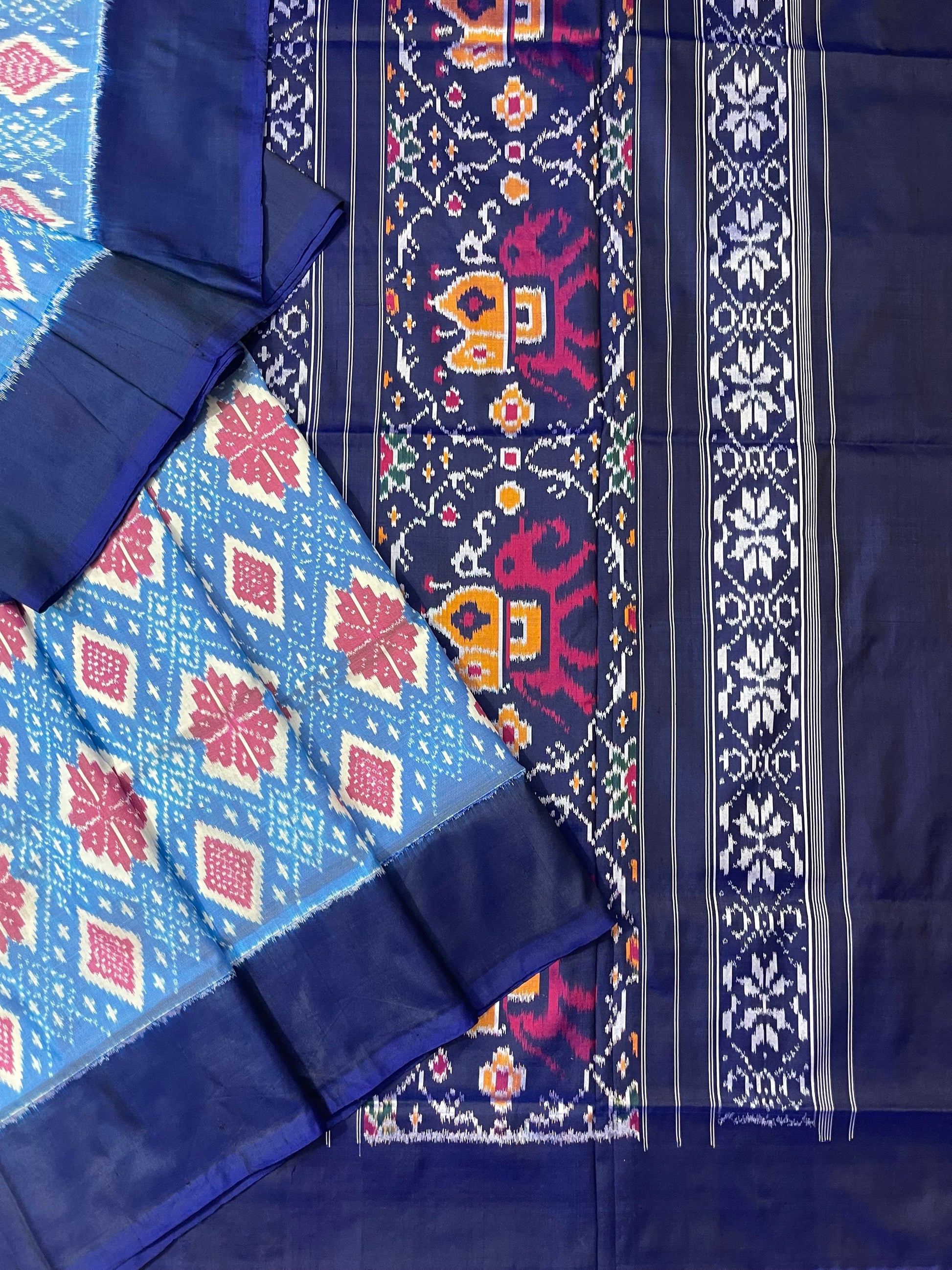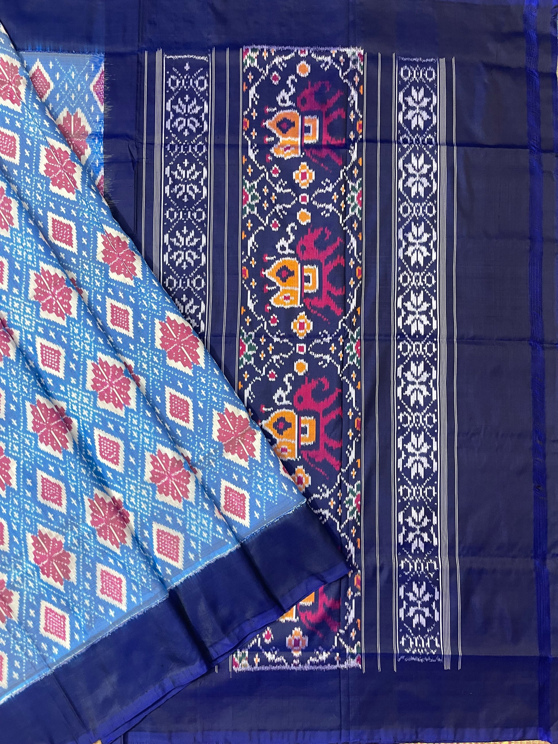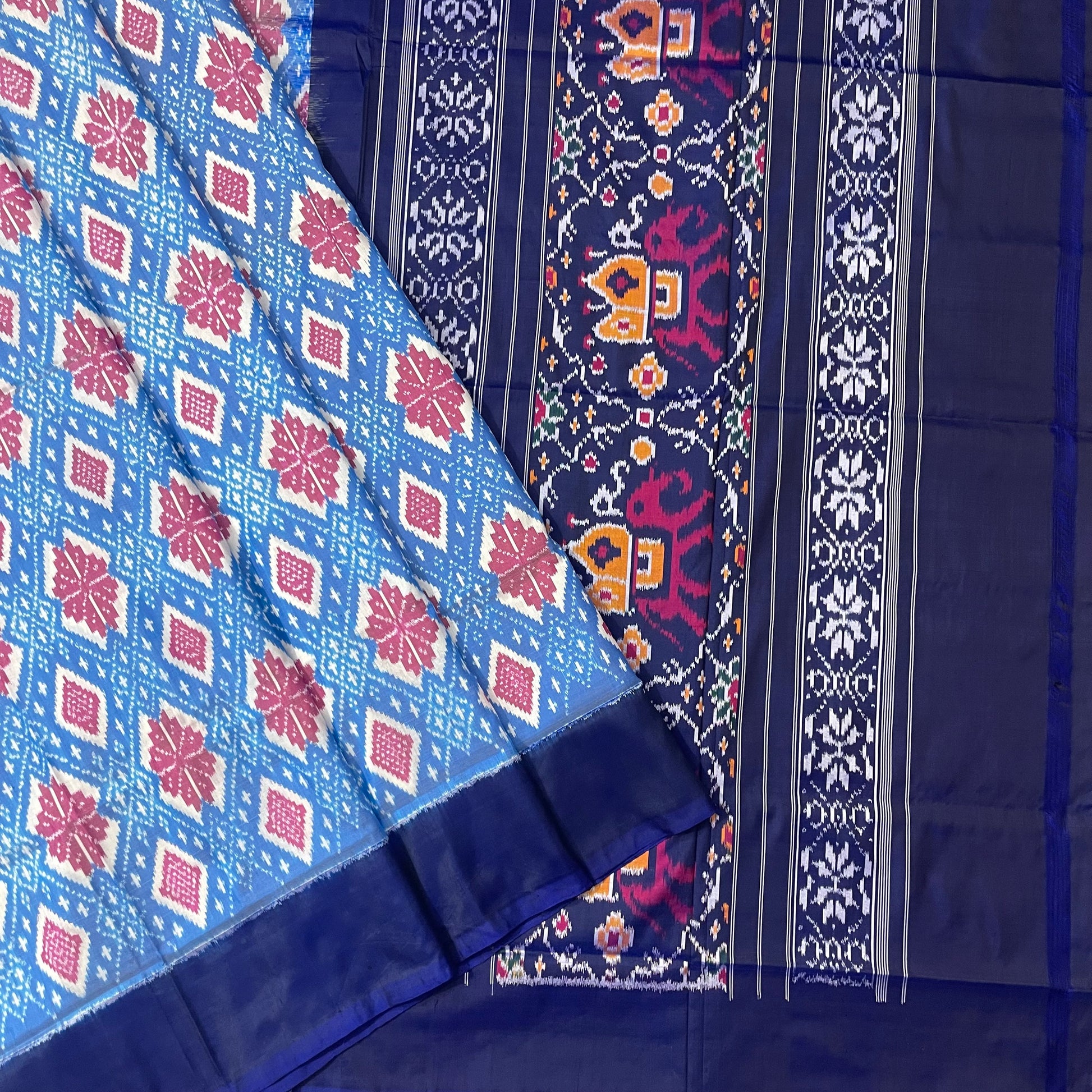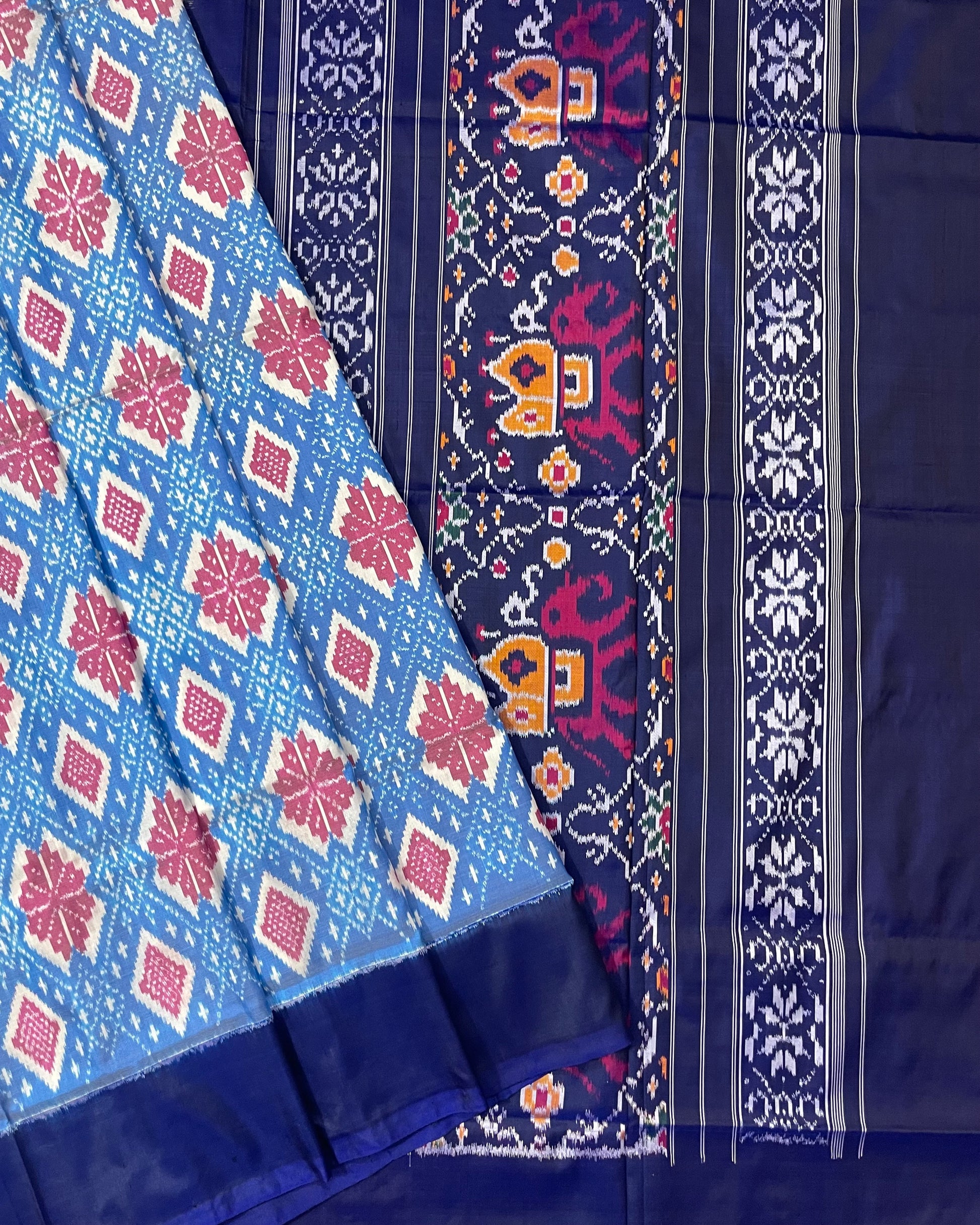 Blue Cambodian Ikkat Silk Sari in Mullberry silk