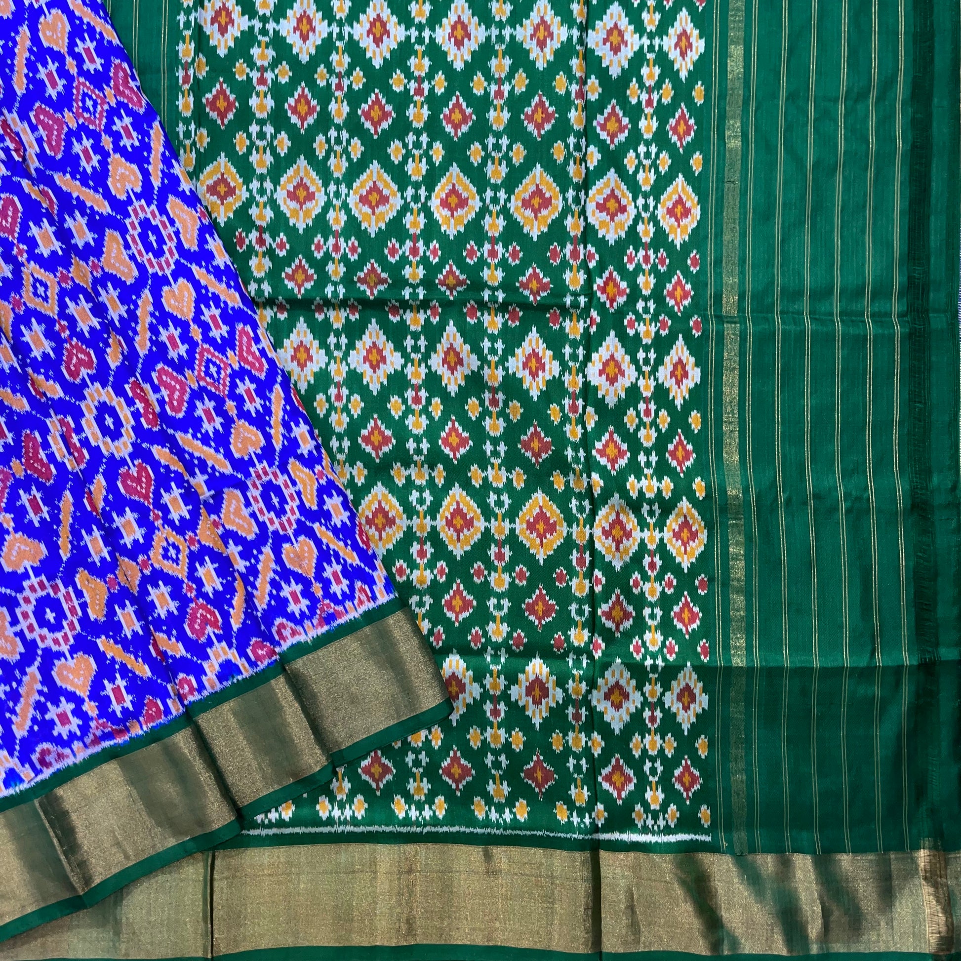 Step into the world of timeless tradition and vibrant artistry with this Ikkat Silk Saree, a true masterpiece of handwoven heritage. Crafted with precision by skilled artisans, this saree showcases the rich cultural legacy of Ikkat weaving, known for its intricate dyeing technique and bold, geometric patterns.