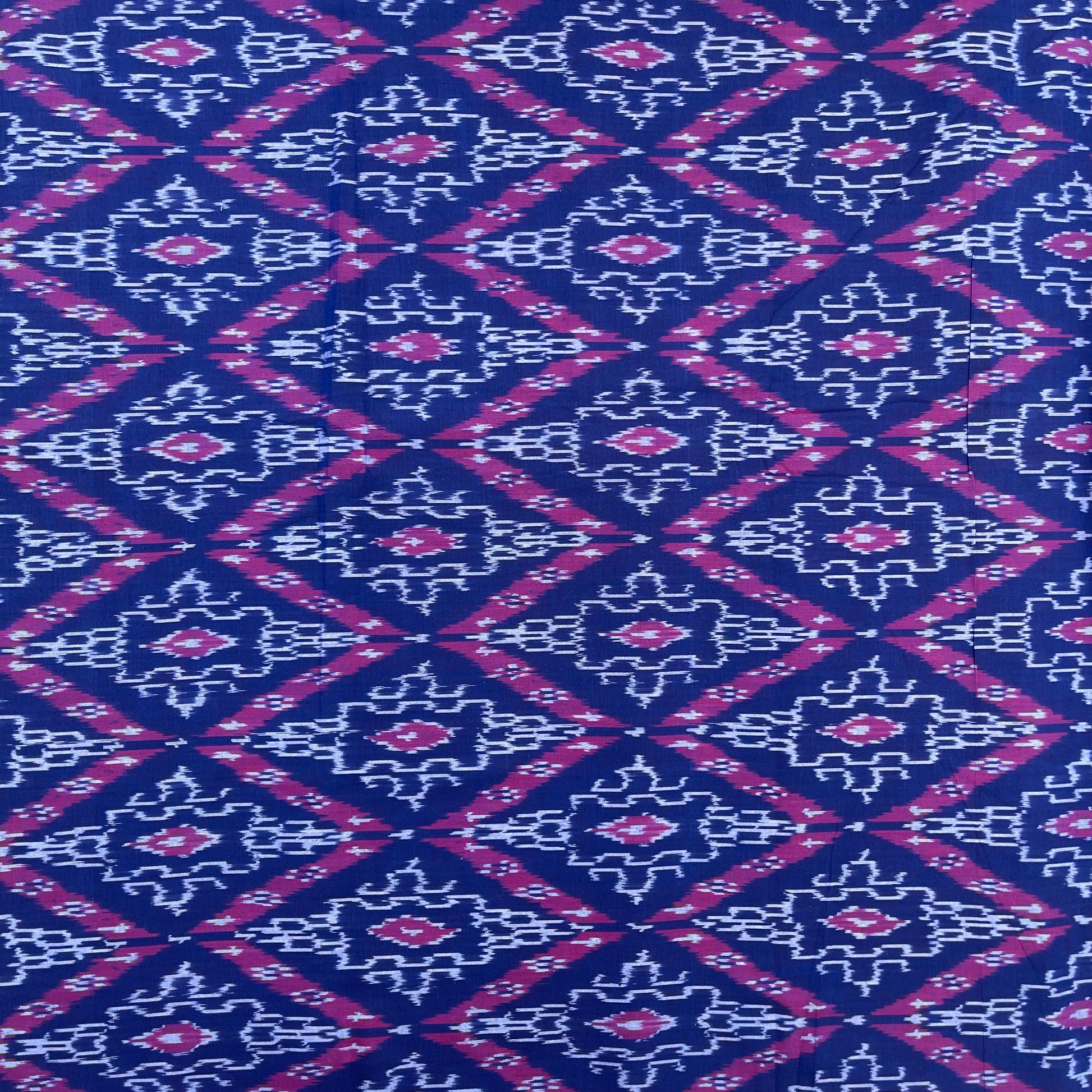 This textile is a proud part of the Pochampally Ikkat tie & dye tradition, known for its vibrant patterns and precise craftsmanship. Woven with pure cotton, the fabric reflects the perfect blend of Indian technique and Central Asian design inspiration, capturing the bold and symmetrical motifs often seen in Uzbek ikats.