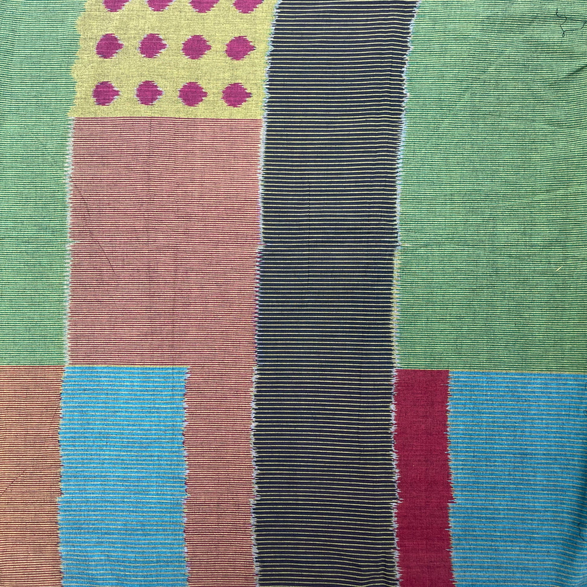 This textile is a proud part of the Pochampally Ikkat tie & dye tradition, known for its vibrant patterns and precise craftsmanship. Woven with pure cotton, the fabric reflects the perfect blend of Indian technique and Central Asian design inspiration, capturing the bold and symmetrical motifs often seen in Uzbek ikats.
