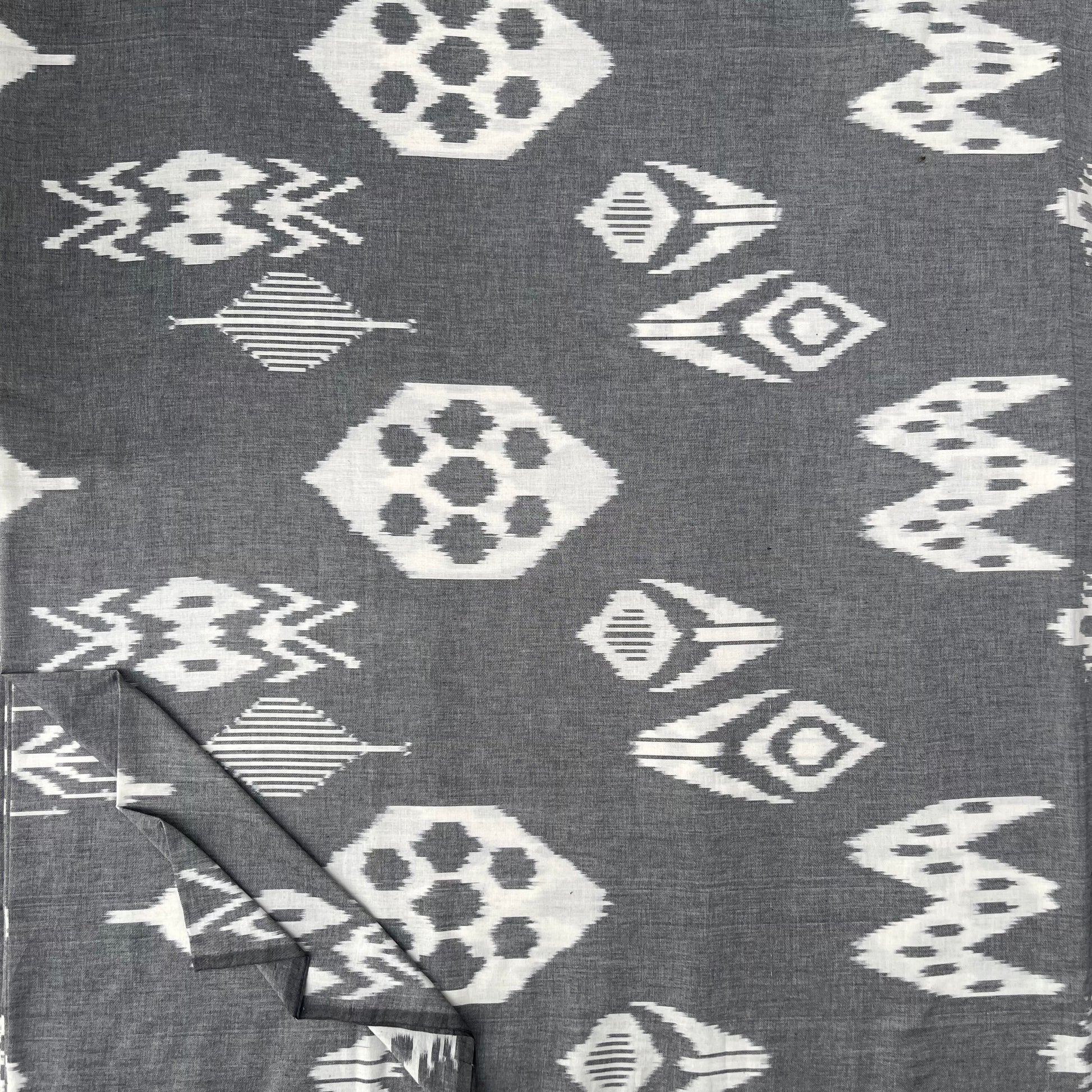 This textile is a proud part of the Pochampally Ikkat tie & dye tradition, known for its vibrant patterns and precise craftsmanship. Woven with pure cotton, the fabric reflects the perfect blend of Indian technique and Central Asian design inspiration, capturing the bold and symmetrical motifs often seen in Uzbek ikats.