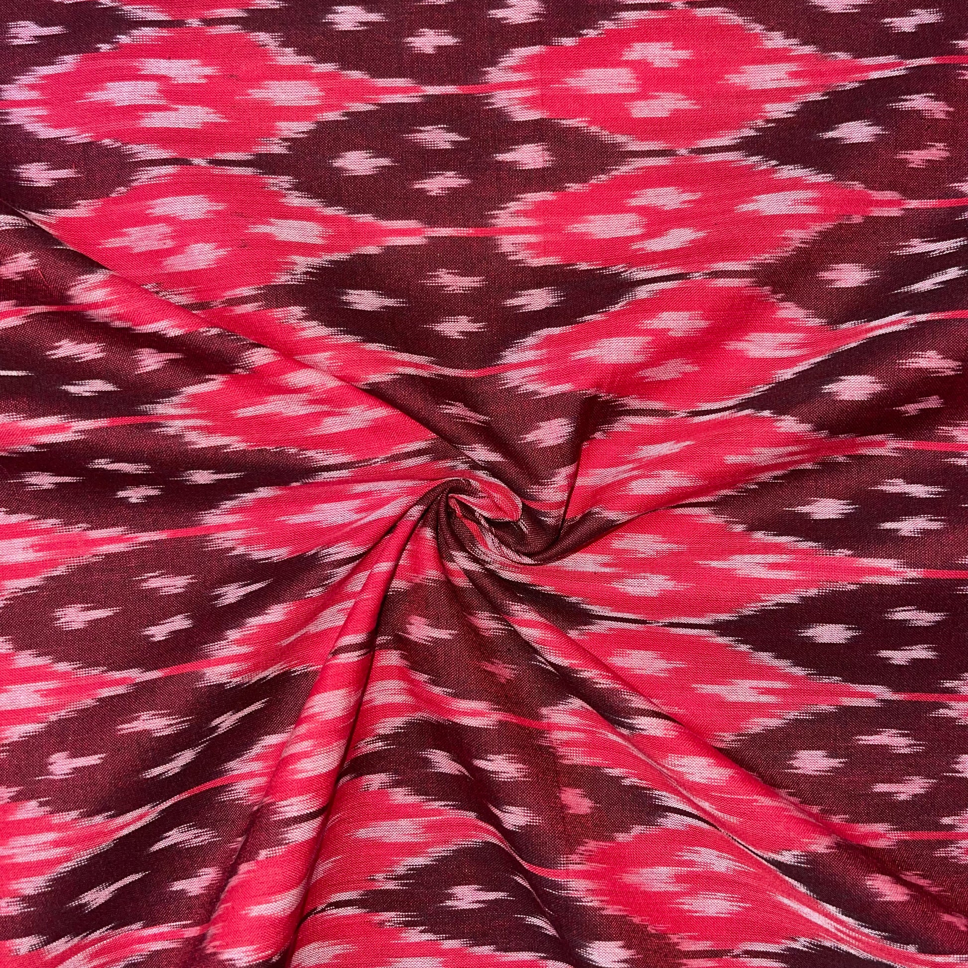 Deep Marron/ Red Ikkat Cotton Fabric