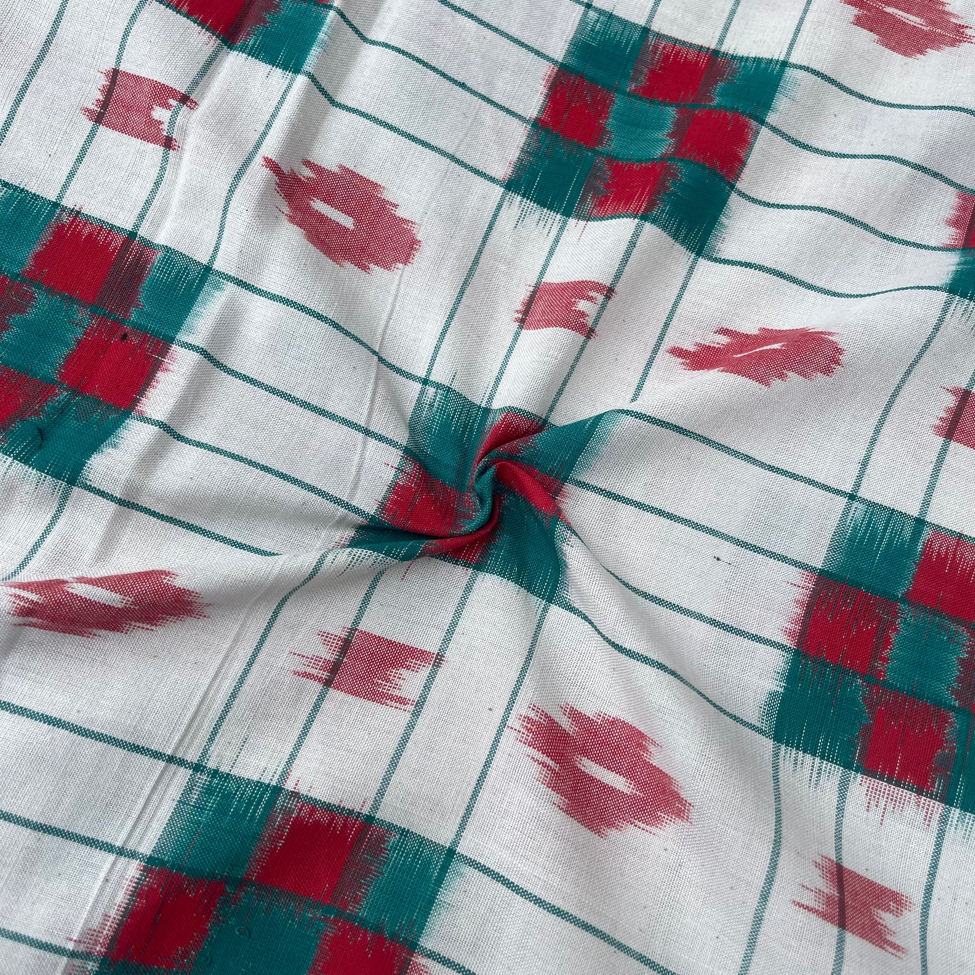 Experience the artistry of handloom weaving with our Double Ikkat Cotton Fabric. In this rare technique, both warp and weft threads are tie-dyed before weaving, creating flawless patterns that reflect heritage craftsmanship. Made from 100% breathable cotton, this fabric is perfect for blouses, kurtas, and home décor projects.