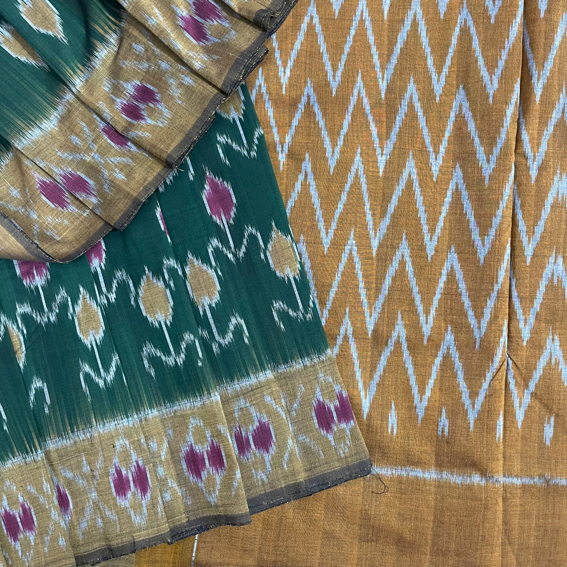 intricate patterns created through a unique dyeing technique called "Ikkat." In Ikkat weaving, the yarns are tie-dyed before weaving to create stunning, pre-determined patterns — a process that requires high skill and precision.