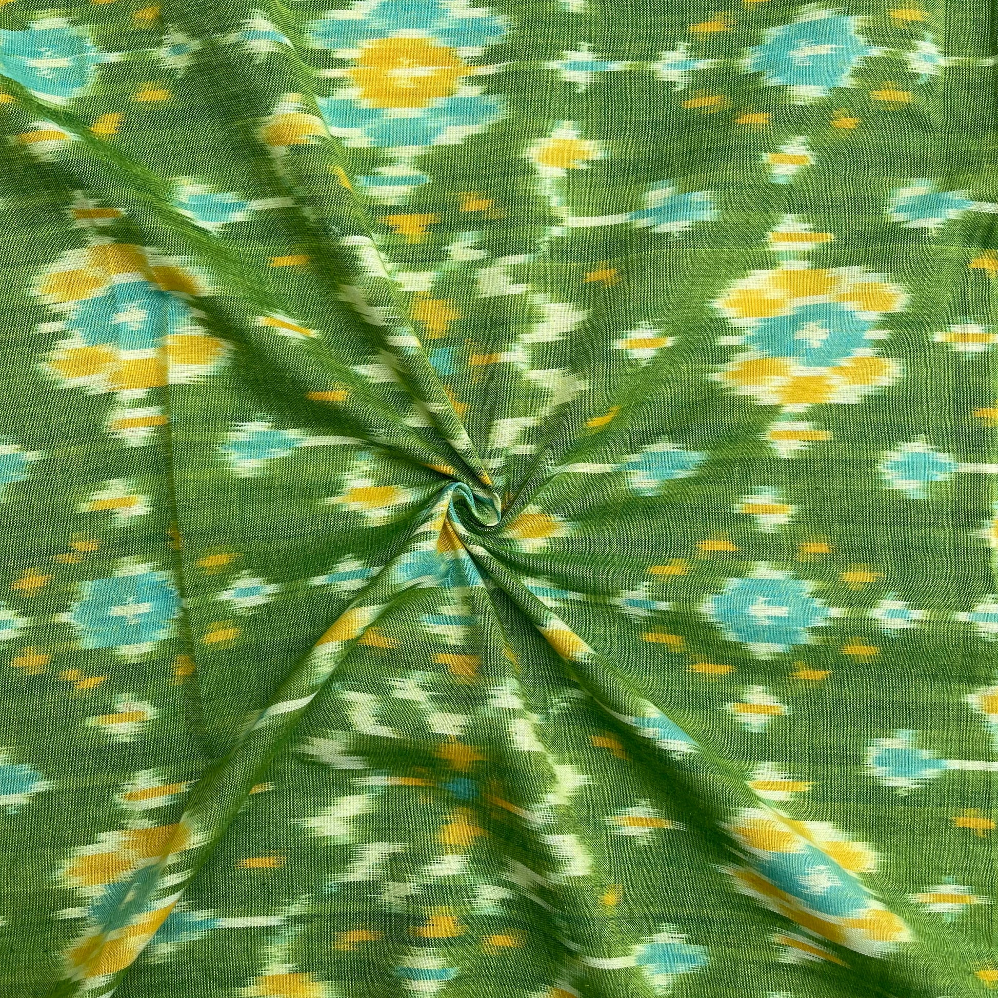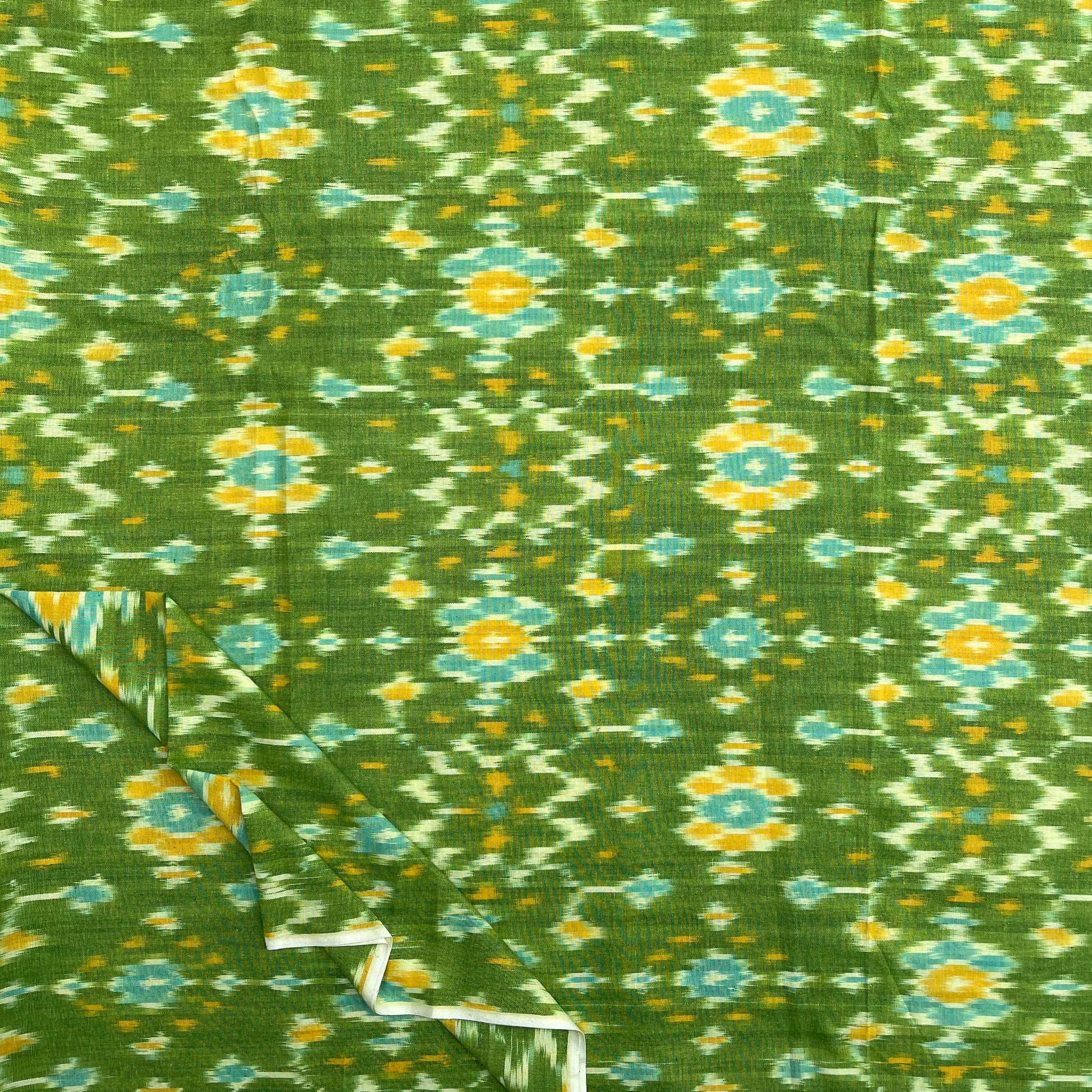 Green Color Pochampally ikkat Cotton Fabric