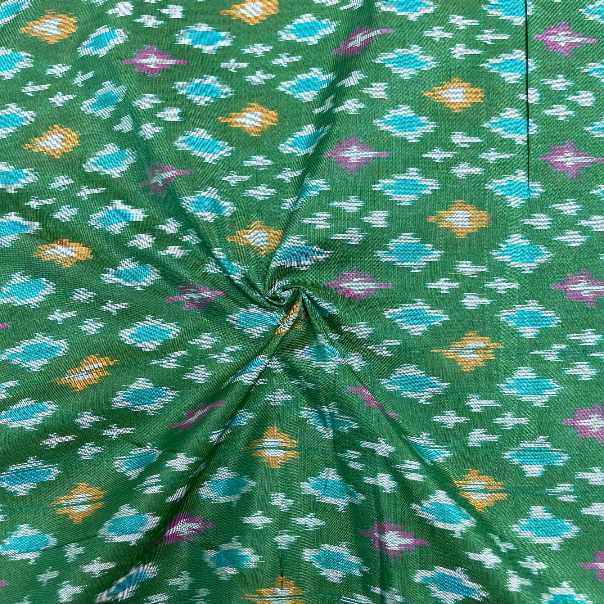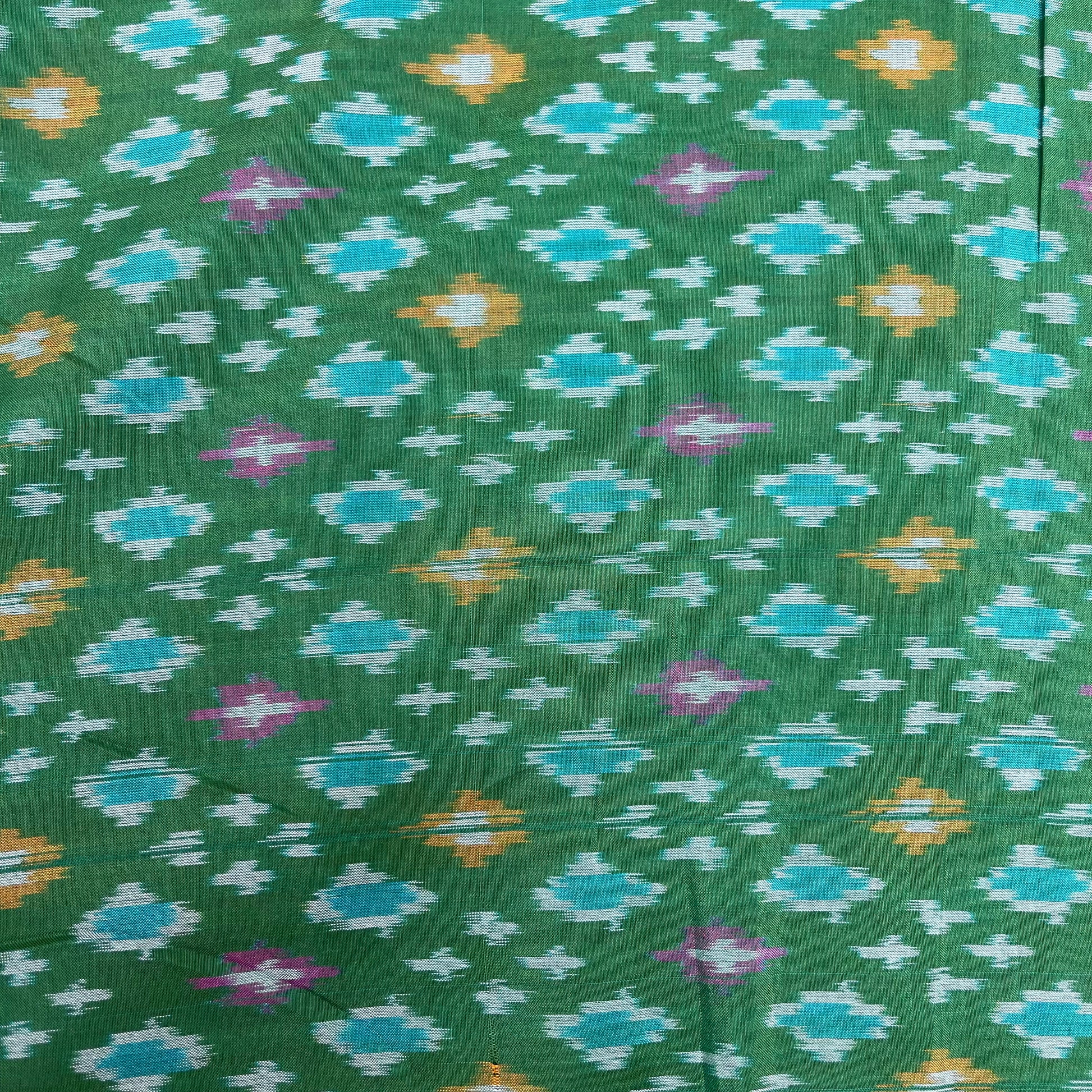 Green Color Raw Silk Ikkat cotton Fabric