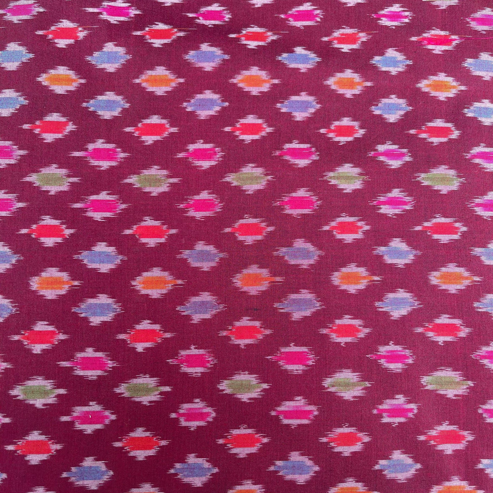 Maroon Color Raw Silk Ikkat cotton Fabric