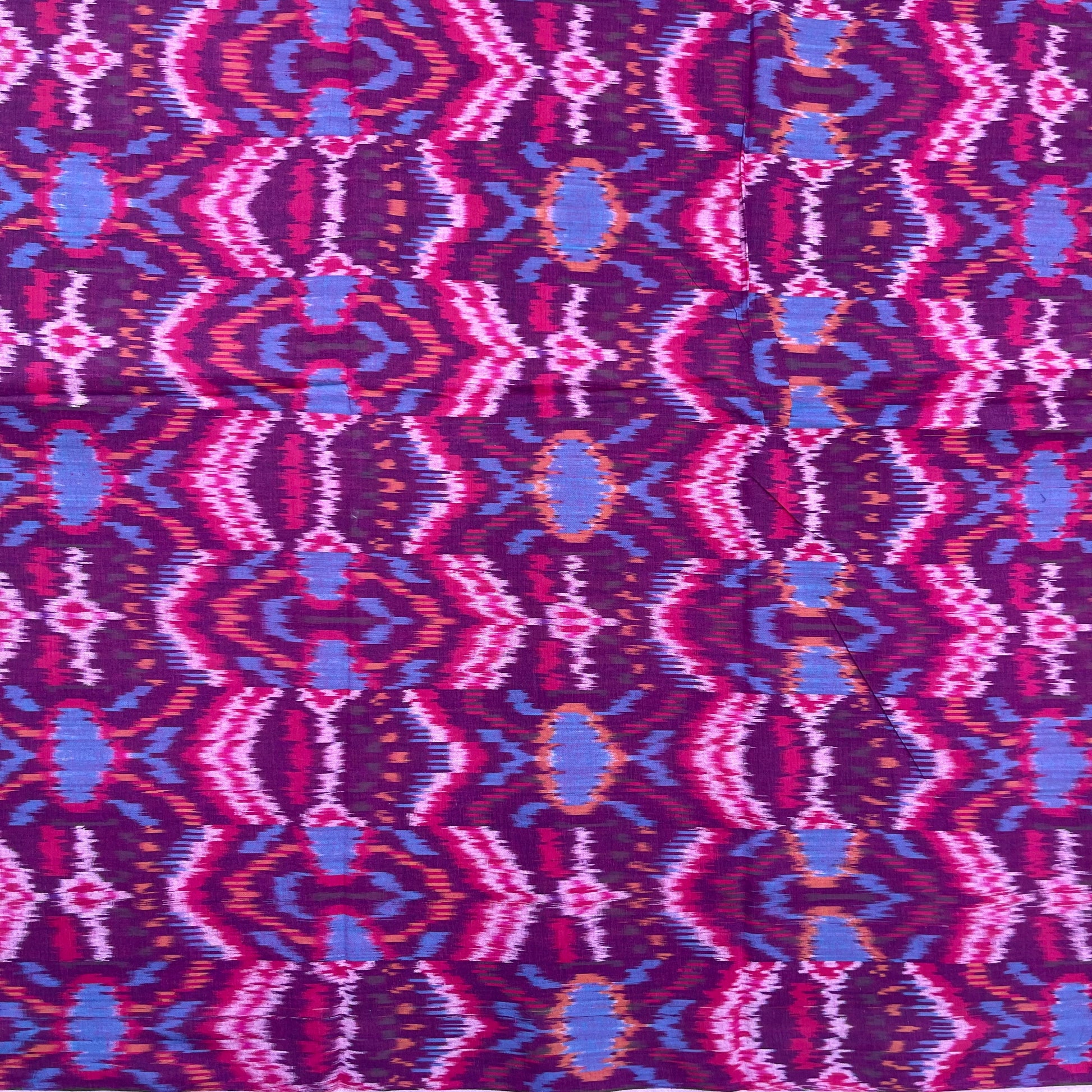 This textile is a proud part of the Pochampally Ikkat tie & dye tradition, known for its vibrant patterns and precise craftsmanship. Woven with pure cotton, the fabric reflects the perfect blend of Indian technique and Central Asian design inspiration, capturing the bold and symmetrical motifs often seen in Uzbek ikats.