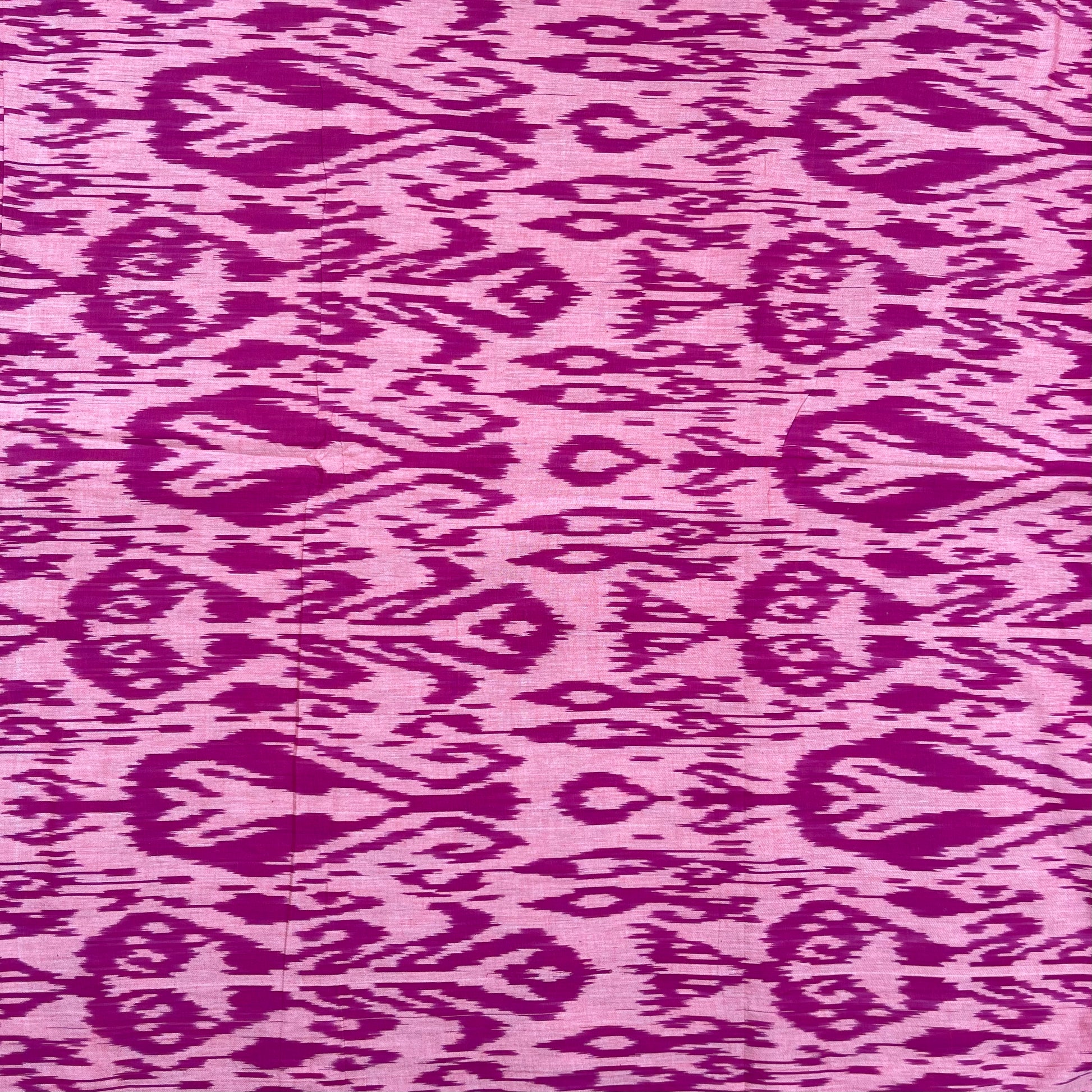 This textile is a proud part of the Pochampally Ikkat tie & dye tradition, known for its vibrant patterns and precise craftsmanship. Woven with pure cotton, the fabric reflects the perfect blend of Indian technique and Central Asian design inspiration, capturing the bold and symmetrical motifs often seen in Uzbek ikats.