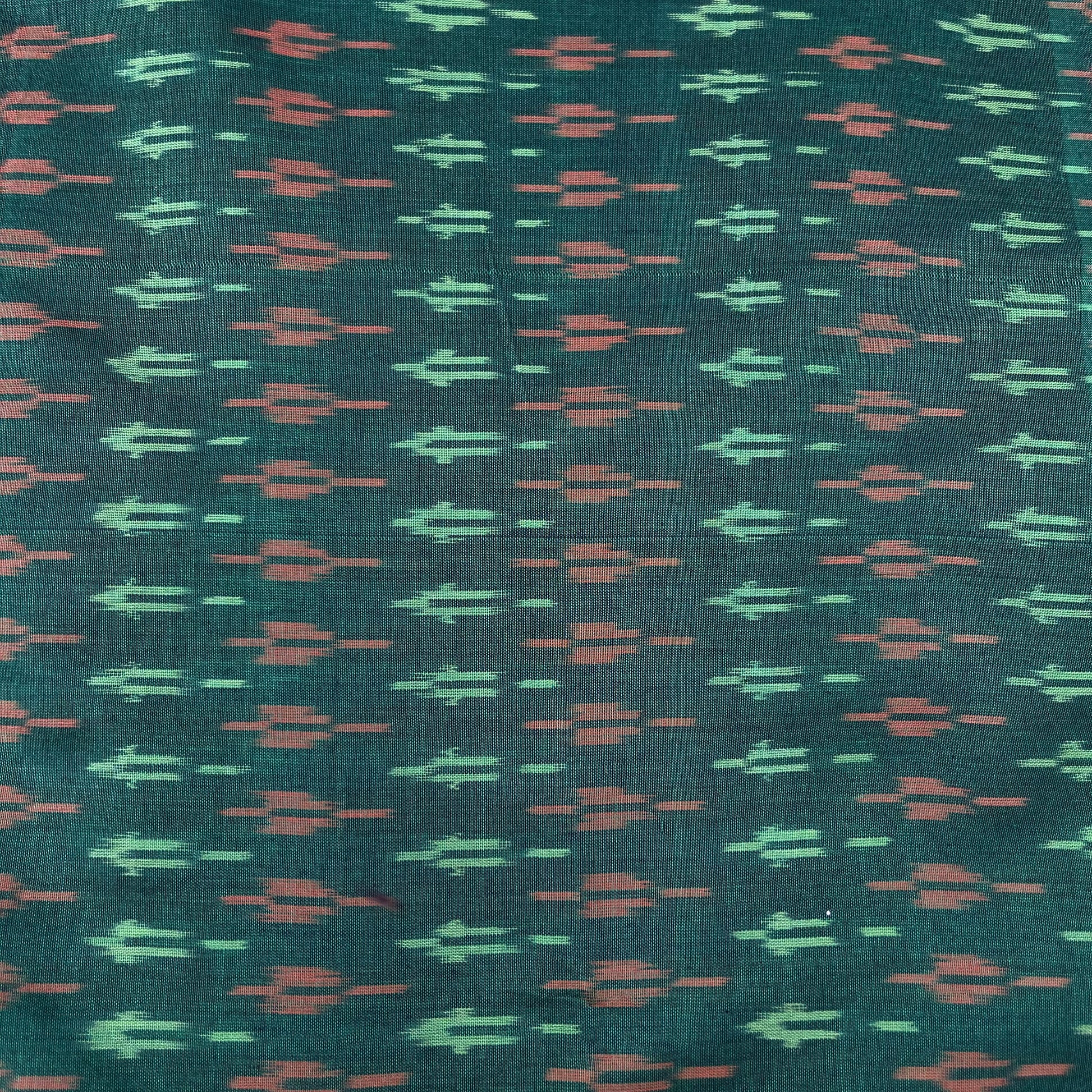 Mersiced Green Colour Ikkat Cotton Fabric