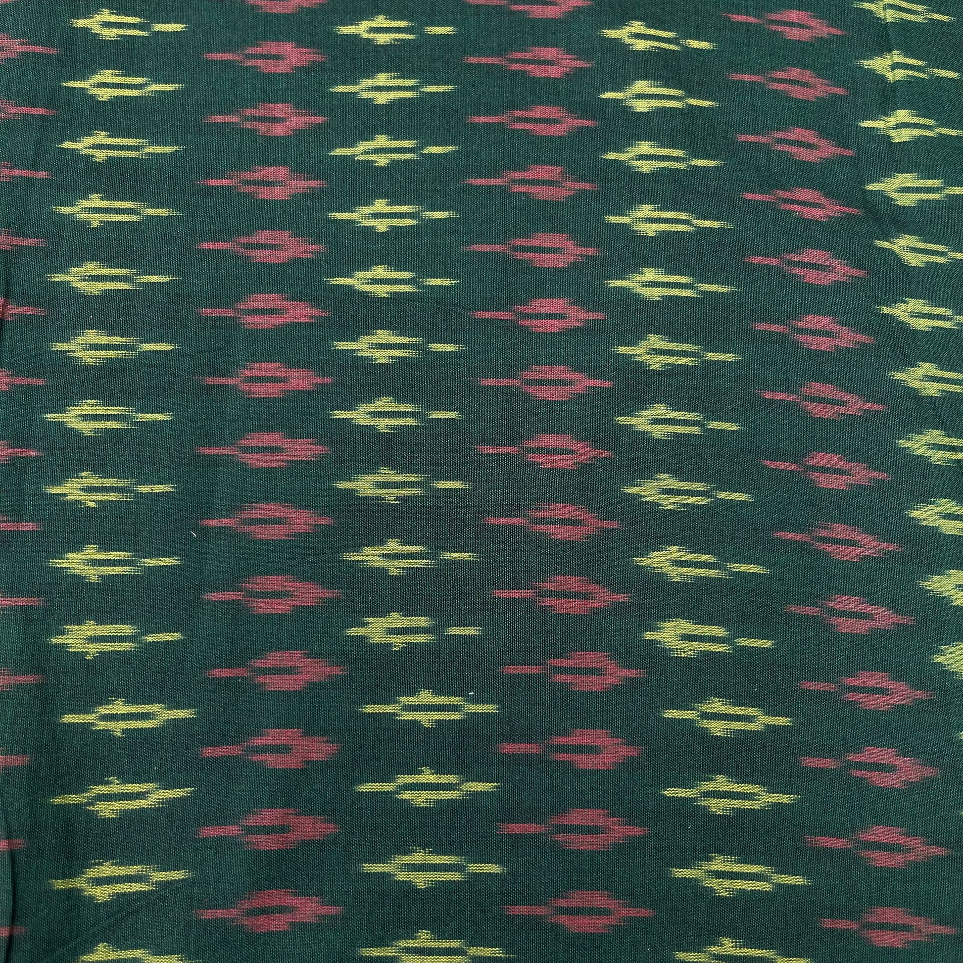 Mersiced Bottle Green Colour Ikkat Cotton Fabric