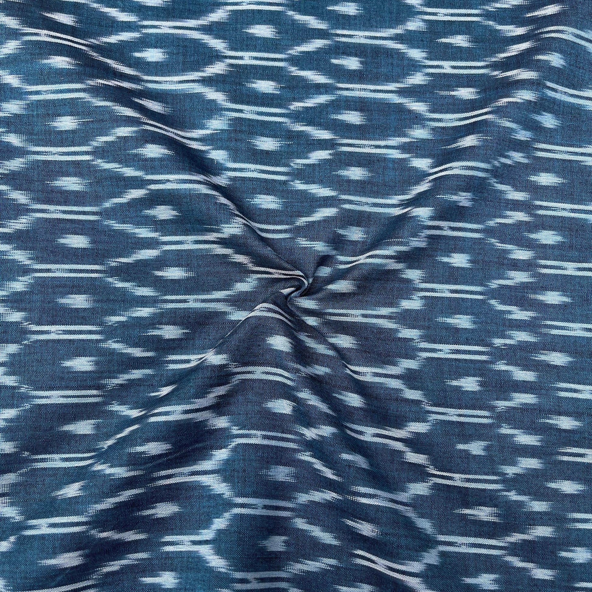 Mersiced Indigo Blue Colour Ikkat Cotton Fabric