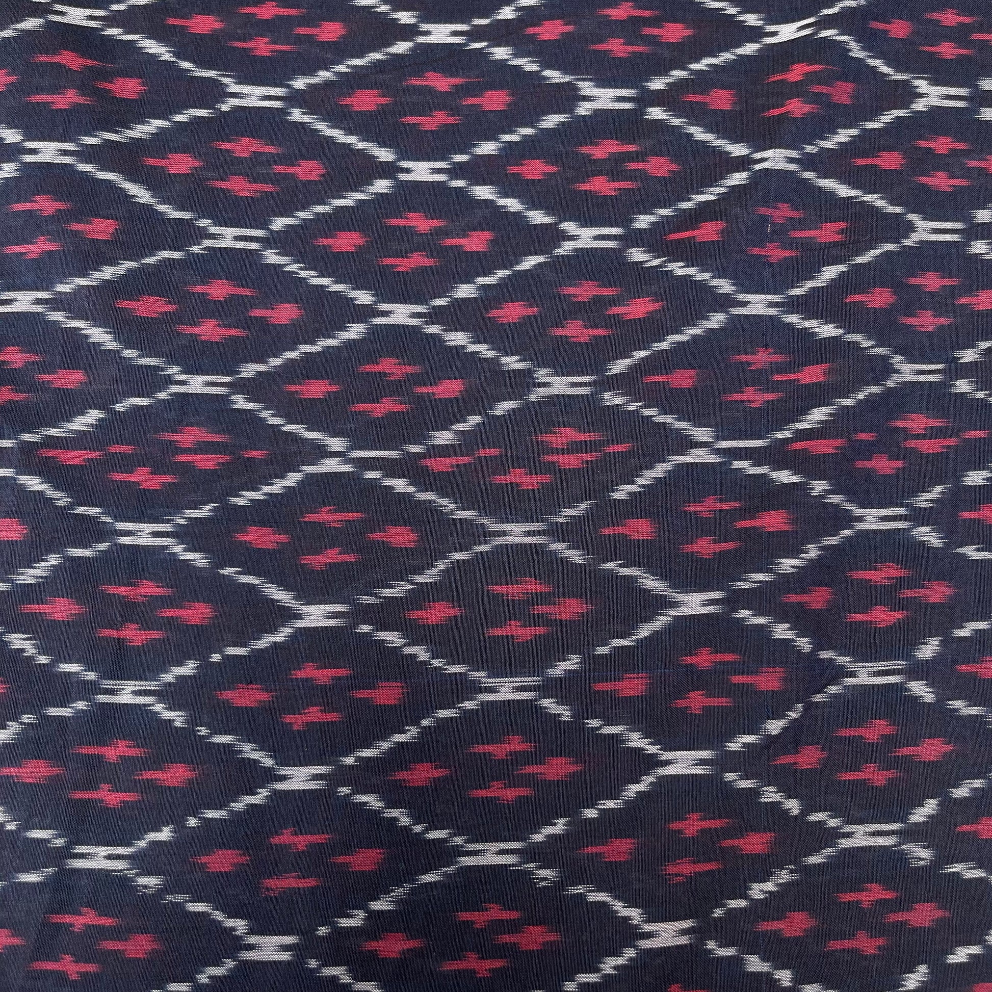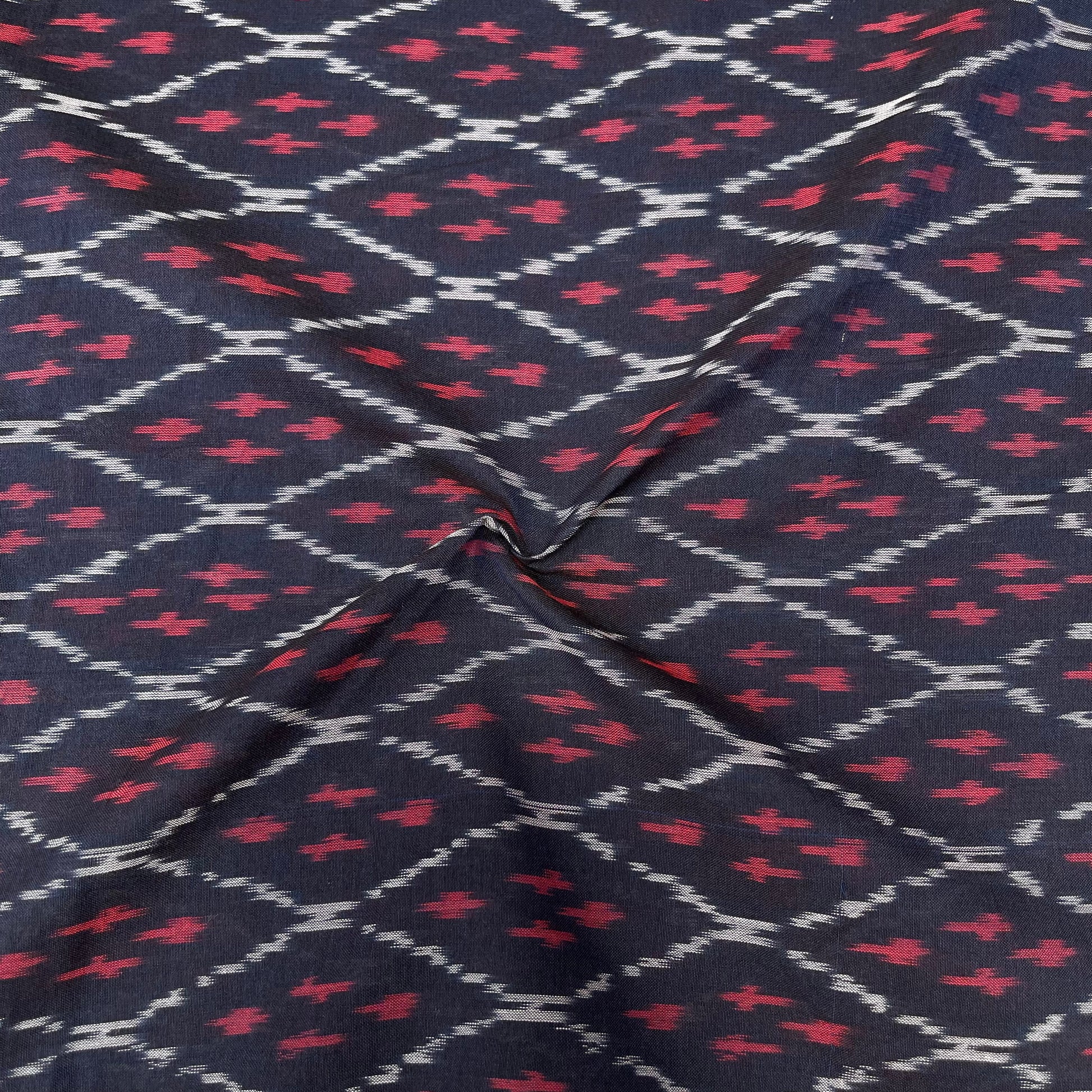 Mersiced Navi Blue Colour Ikkat Cotton Fabric