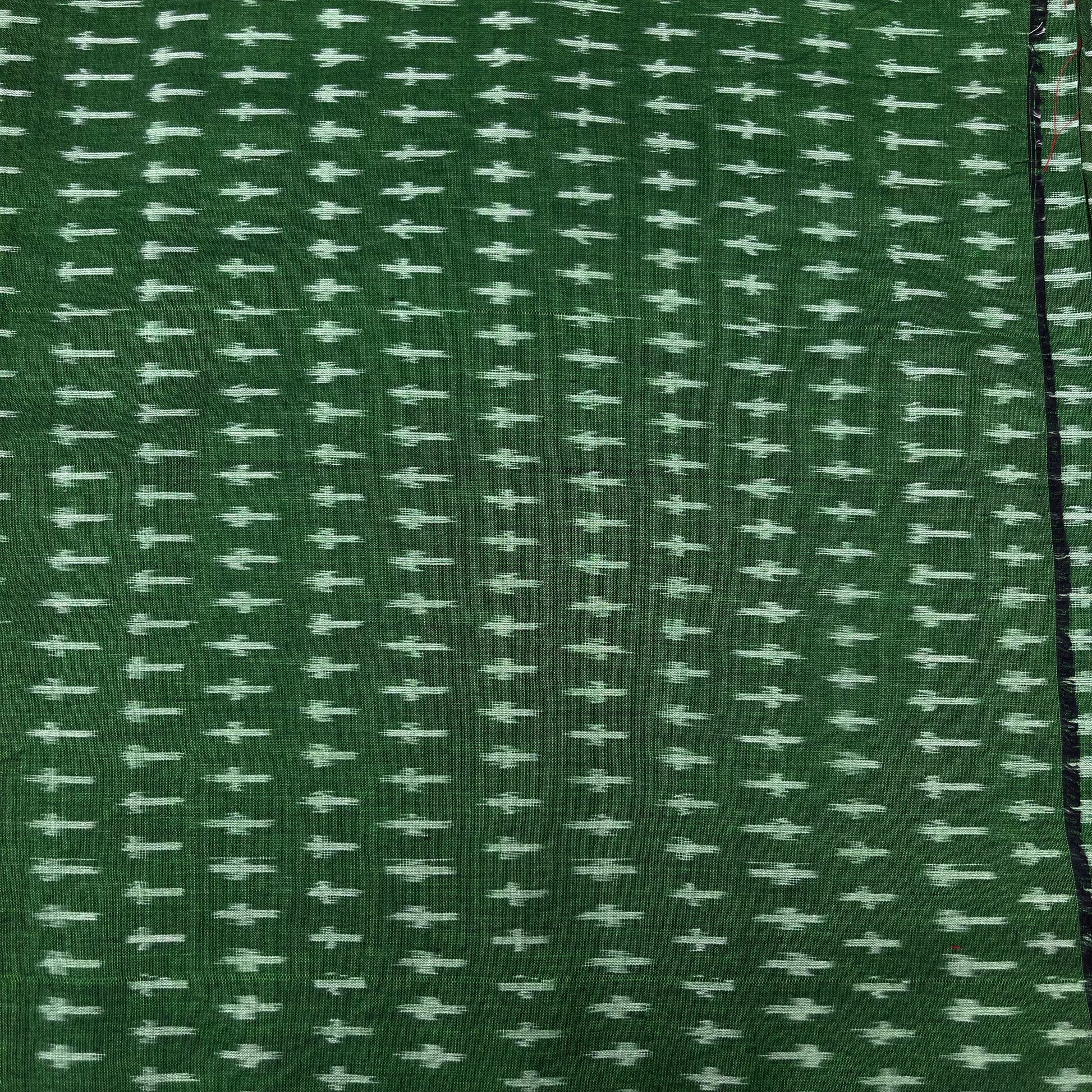 Mersiced Green Colour Ikkat Cotton Fabric