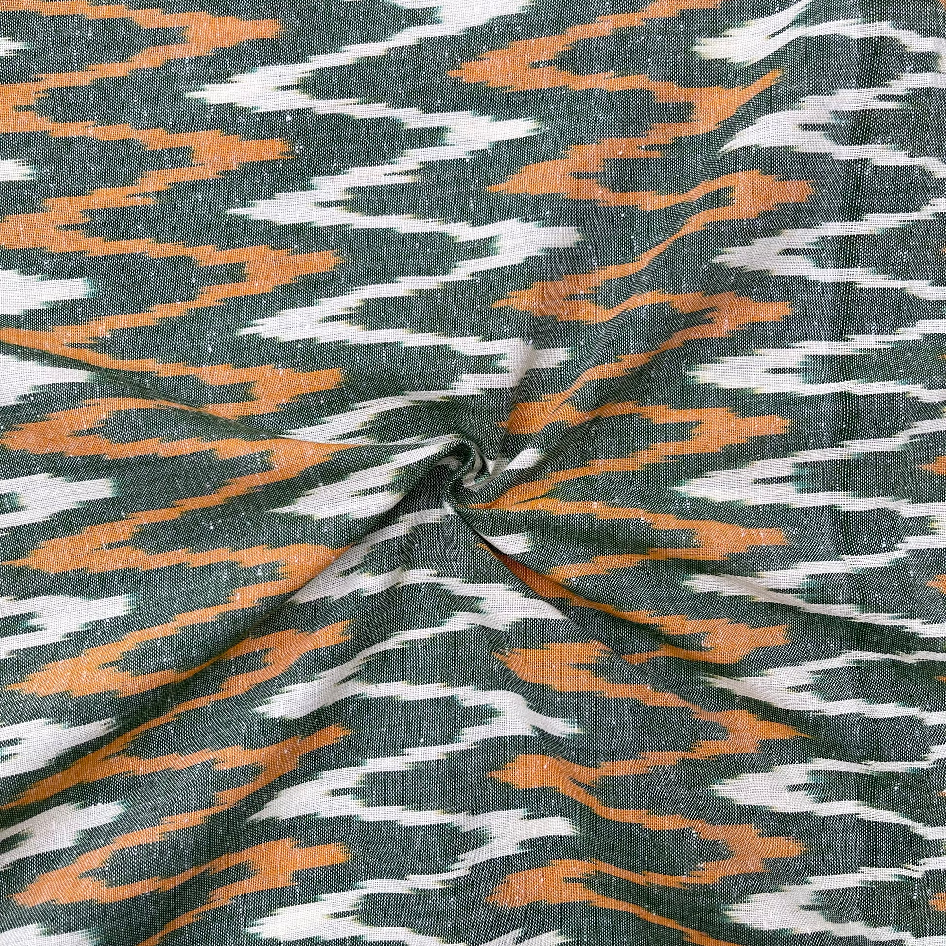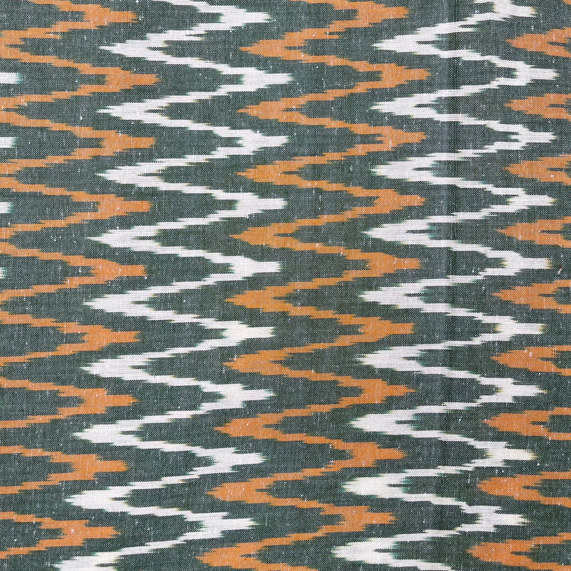 Green Colour Ikkat Cotton Fabric