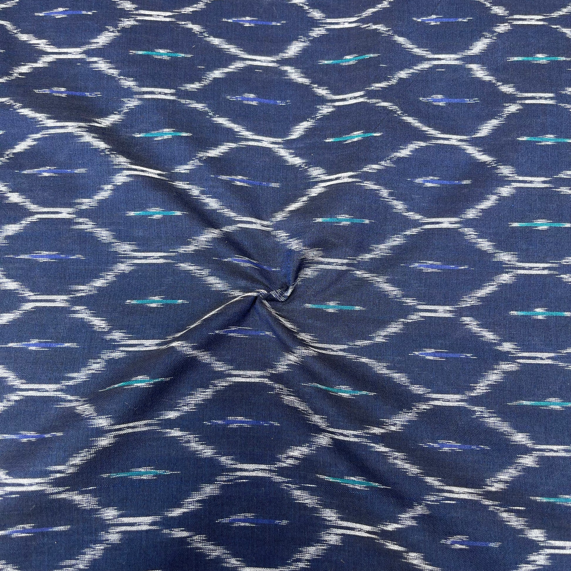 Mersiced Navi Blue Colour Ikkat Cotton Fabric