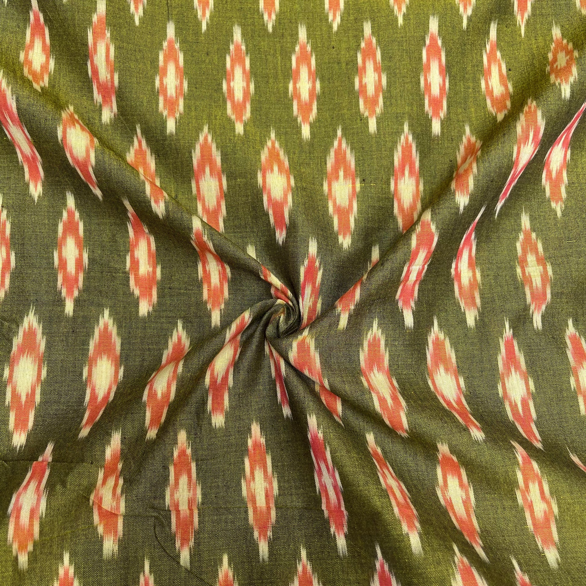 Mrisced Mahendi Green ikkat Cotton Fabric