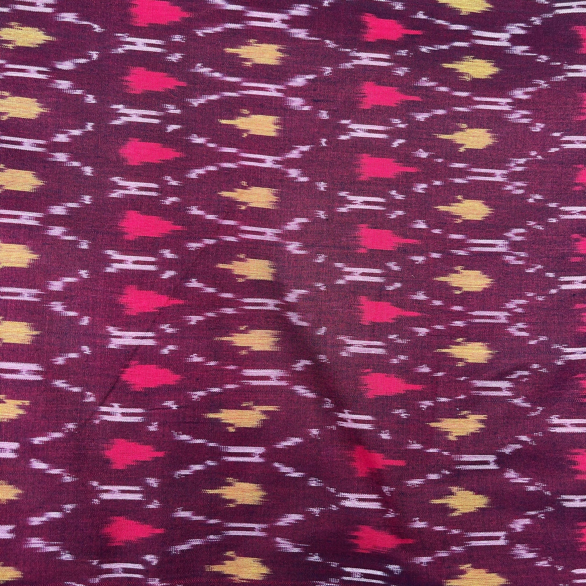 Mersiced Maroon Colour Ikkat Cotton Fabric