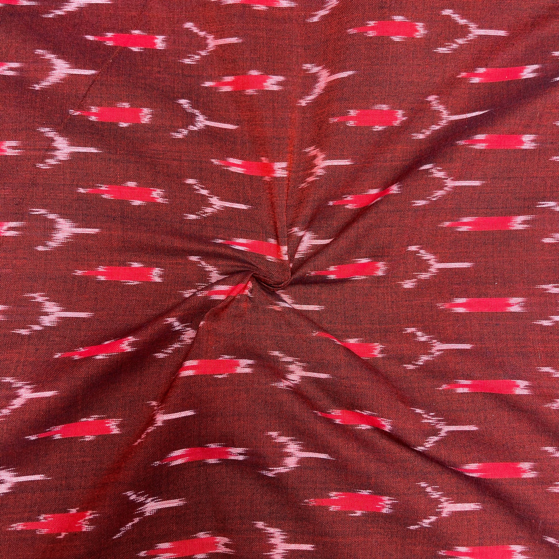 Mersiced Maroon ikkat Cotton Fabric