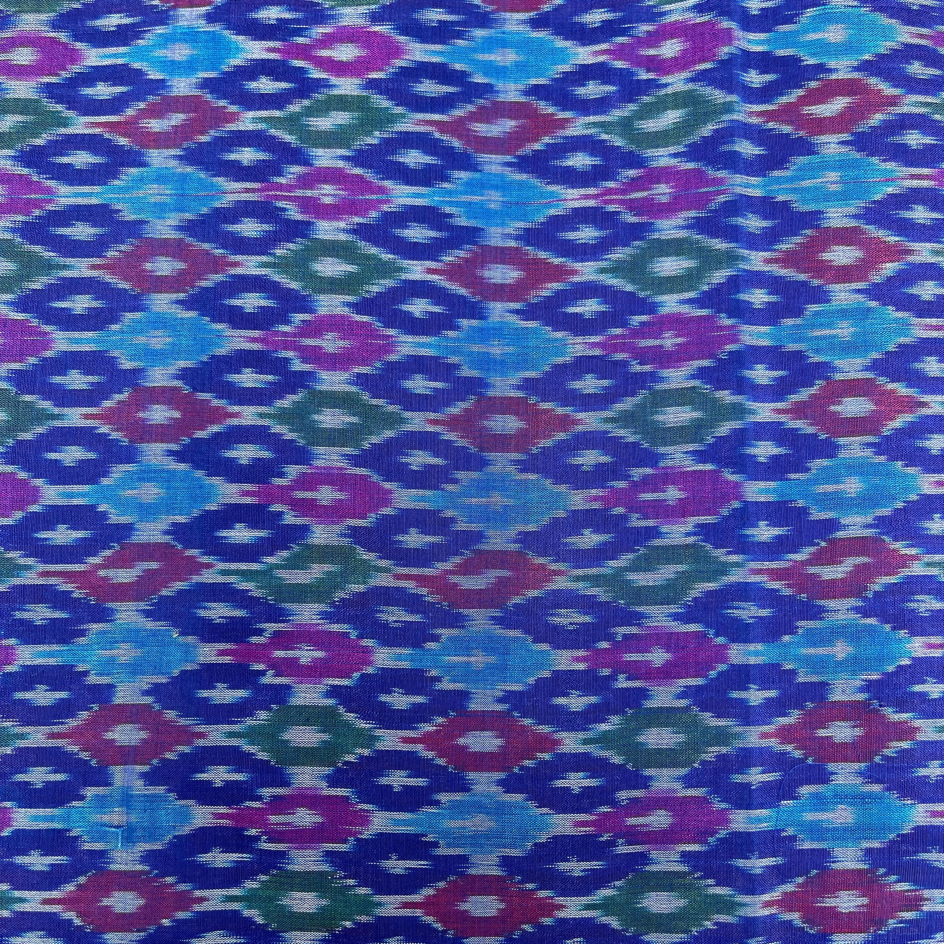 Discover the timeless charm of Ikkat Silk Cotton Fabric handwoven by skilled village master weavers of Koyyalagudem. This premium handloom ikkat fabric is crafted with a perfect blend of silk and cotton, offering both durability and a soft, lustrous finish. With a 45 inches width, it is ideal for making sarees, blouses, kurtas, dresses, and ethnic wear.